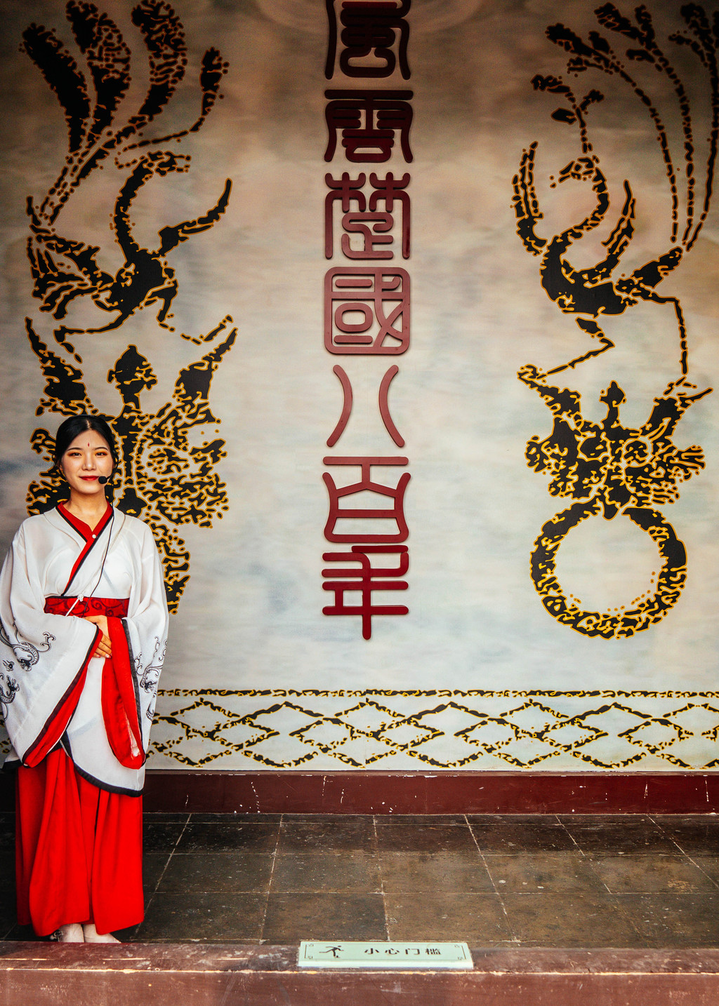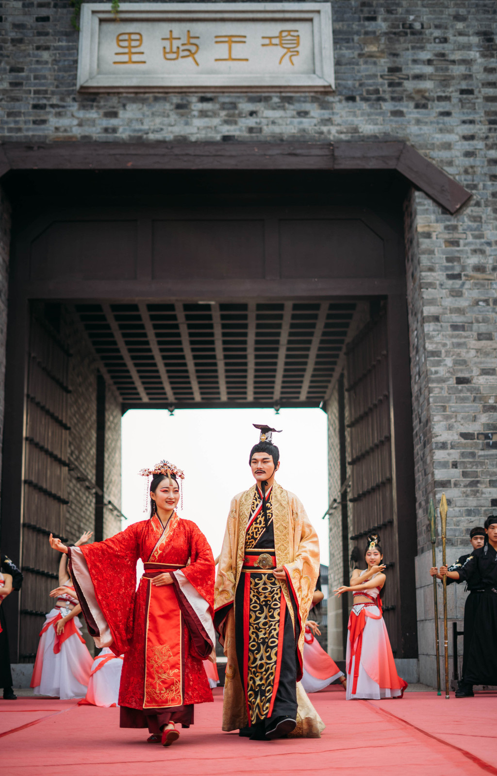 项王故里景区的建筑风格以楚地汉风为主,兼具宫廷建筑和园林建筑特色。换上景区提供的特色楚服,立刻就有了一种穿越回两千多年前的错觉。