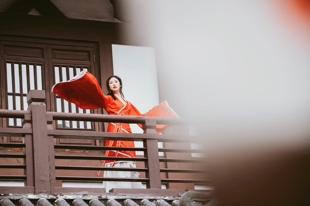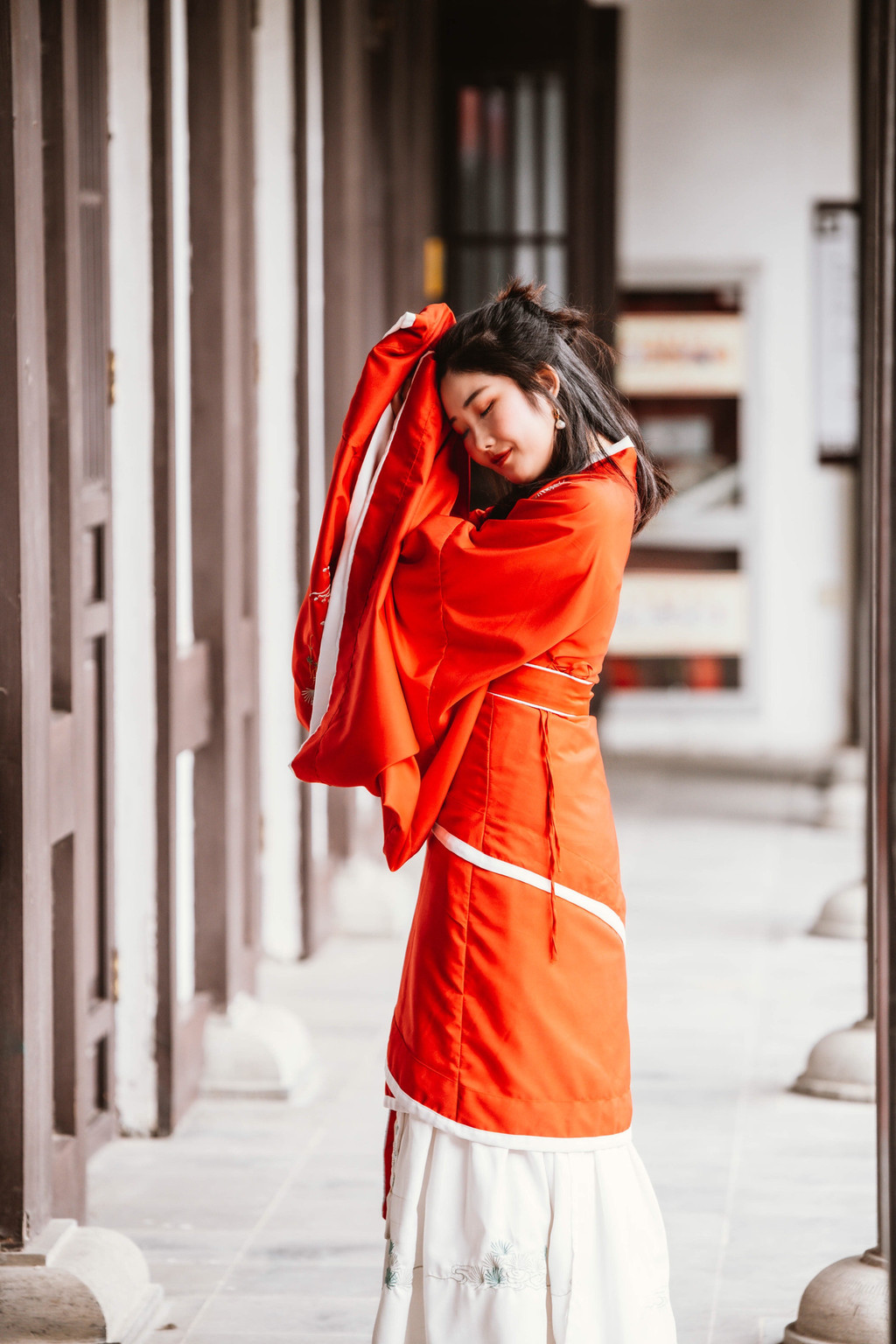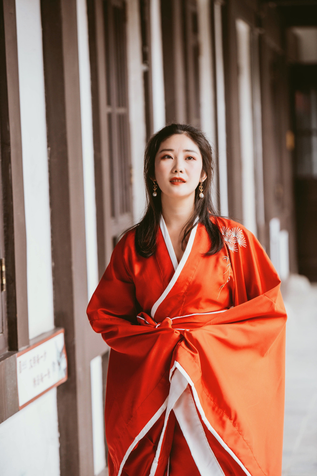 楚服亦是汉服的一种,便是楚人所着的衣物。楚服颜色大多温婉,但还是凭直觉选一身正红色,只觉项羽的故事惨烈,与这火红色才最为相配。