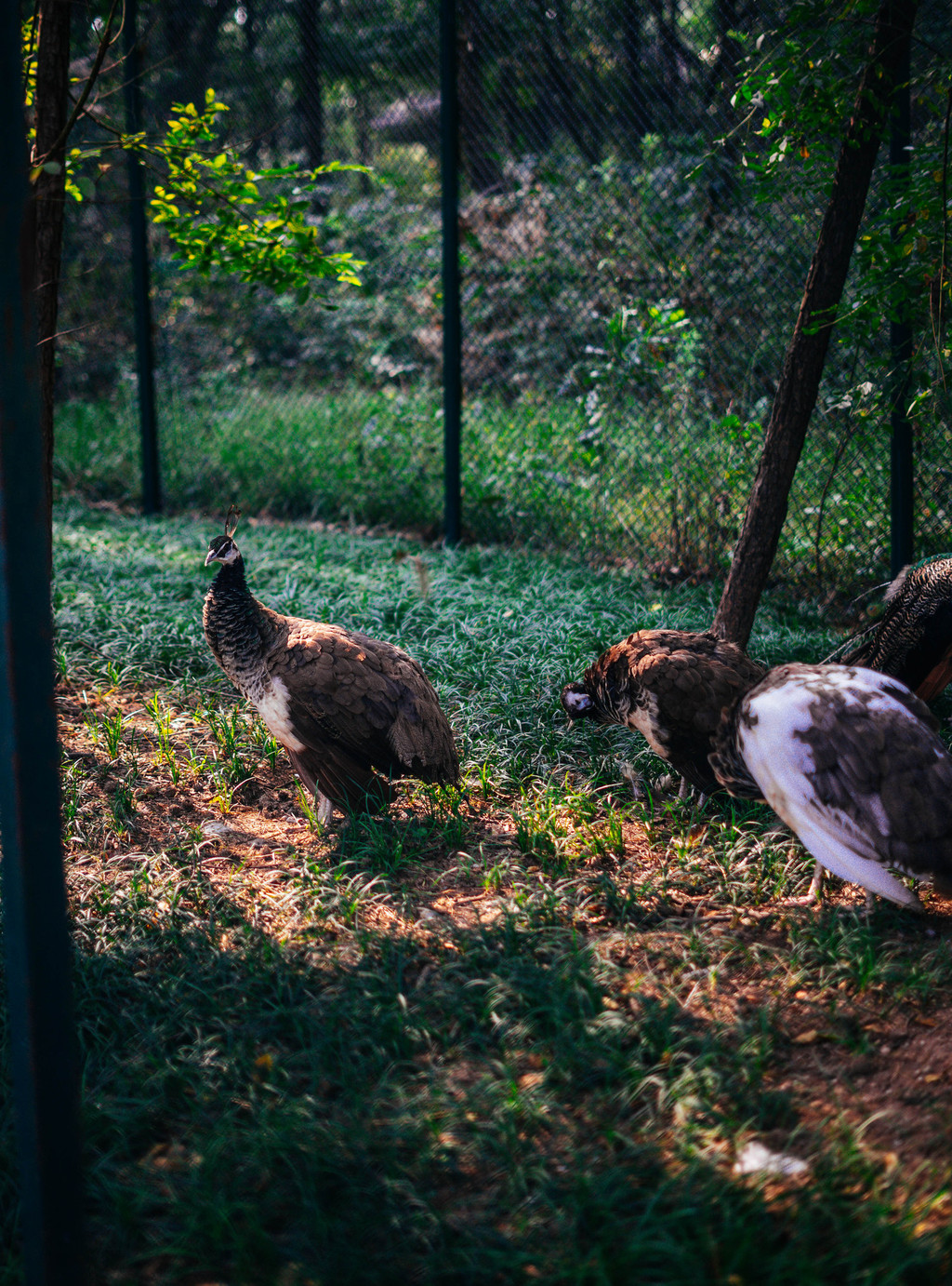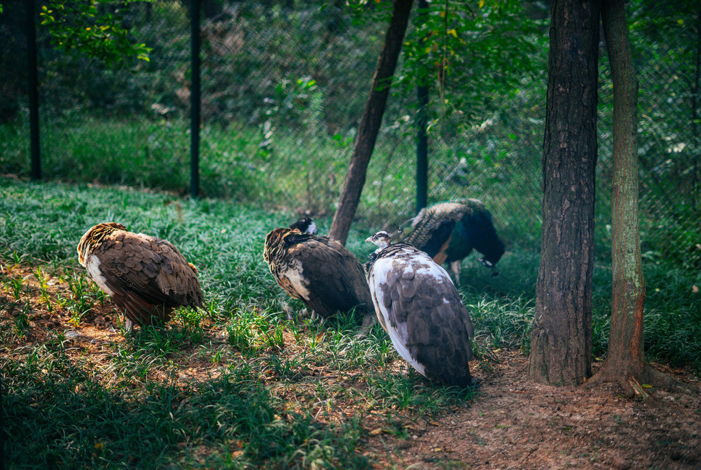 兔子的隔壁邻居是孔雀,闲庭信步般走来走去好几遭,依旧高冷的不肯开屏让我们一睹芳容。