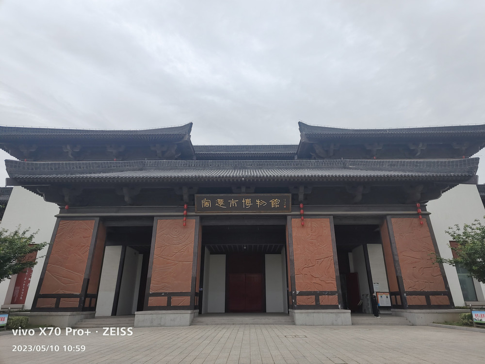 2023年5月10日早晨吃过酒店自助早餐,7点20分到汽车站,当天的目的地是宿迁,宿迁是我们临时加的,因为新沂到宿迁很近,几十公里,有项王故里景区,值得一去。因此,我们准备去宿迁一趟,当天去,当天回。早晨去宿迁的班车7点45发车,到达宿迁汽车站是9点15分,下车乘302路公交到项王故里下车,看到项王故里景区旁就是宿迁博物馆,由于天气不太好,索性先去博物馆参观。