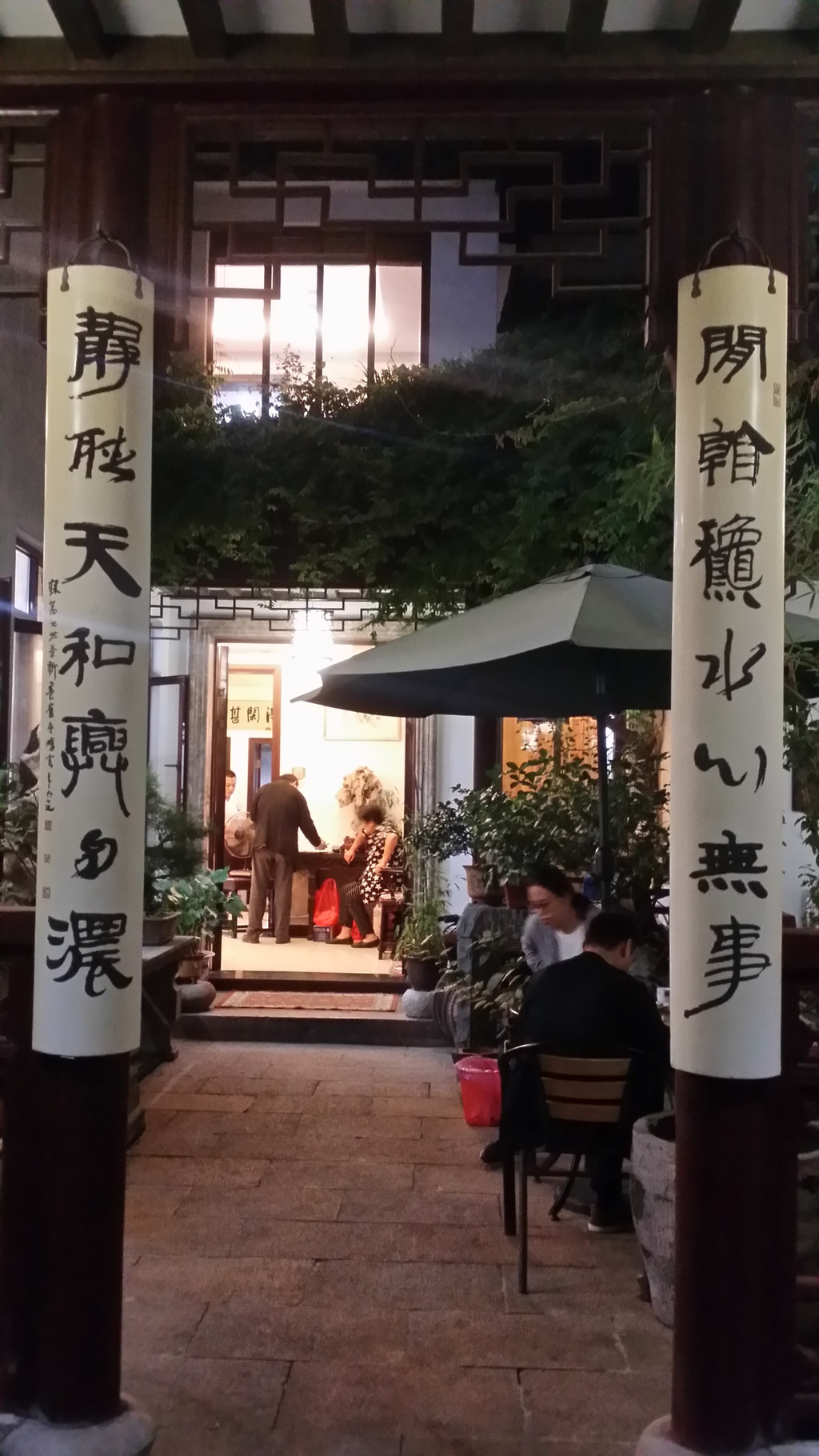 店家看上去是个烹饪传家久,诗书继世长的世家,守着一所老宅,庭院各处可见上品太湖石。