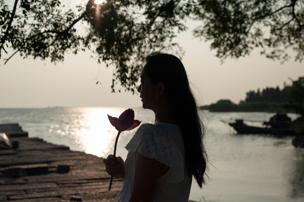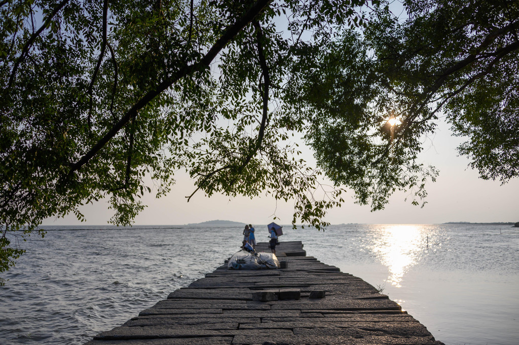 傍晚的风吹着不热了,站在码头看着波光粼粼的湖面,秀美的景色呈现在我的眼前。