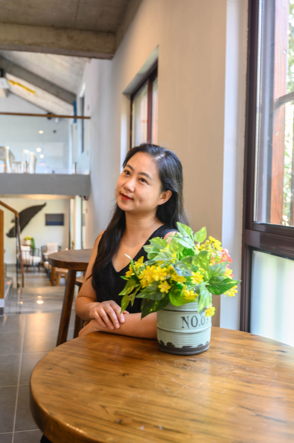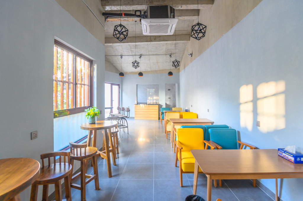 走上阶梯,我恍如穿越了,这里是现代风格,彩色的椅子、宽敞的空间太适合拍照了。