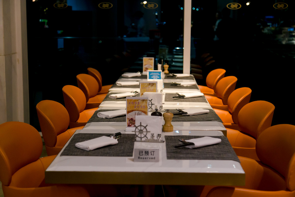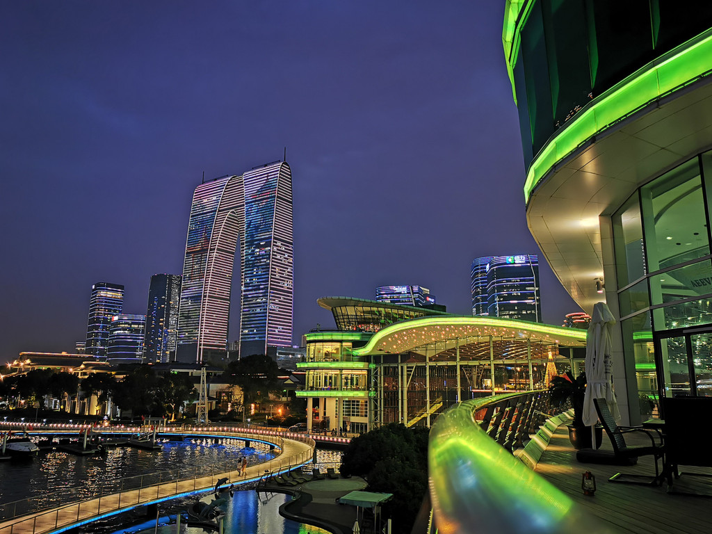 冬日的白天很短暂,夜幕很快降临了,早听闻苏州的夜景很美。可惜没有太多的时间去欣赏,就在酒店的甲板上拍摄了一张东方之门的夜景,圣汐的豪华自助晚餐正等着我们。
