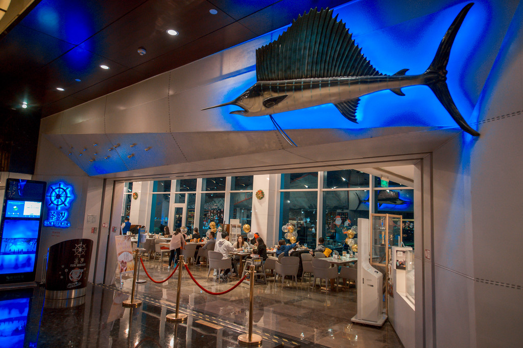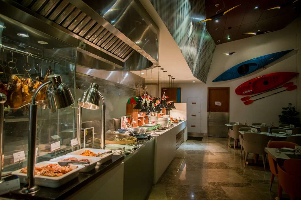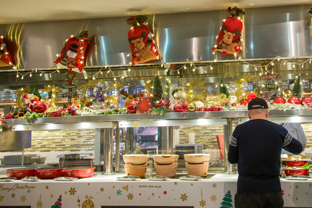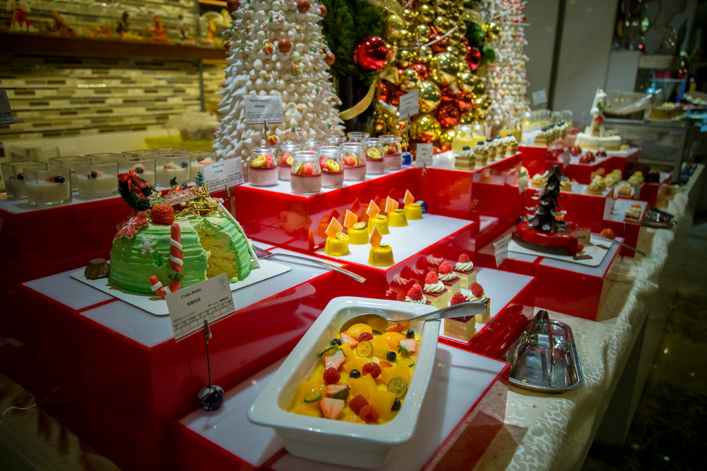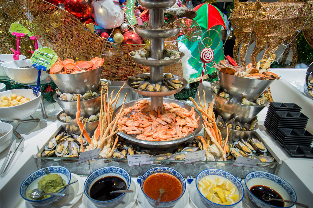荟萃全球美食的全日餐厅圣汐,圣诞的装扮依旧在,满是星星点点,喜欢这样的气氛。圣汐里的美食很多,海鲜牛排,还能喝到新鲜的椰子汁,好似在热带海岛度假。