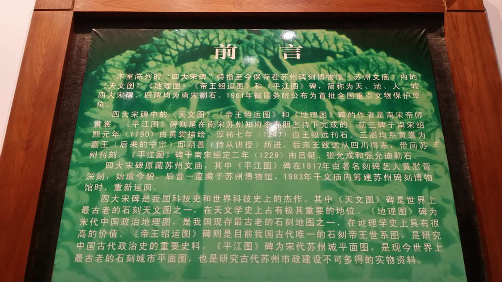 文庙的另一样宝贝是位列1961年全国第一批重点文物的四块宋碑。其中的平江府图里清晰地刻着文庙大成殿和一路之隔、图中留存至今的唯一园林--沧浪亭。