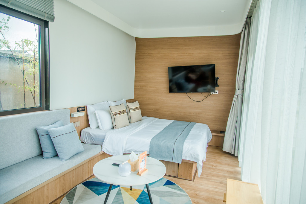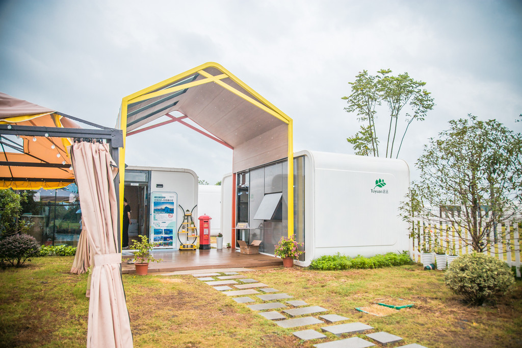 夜宿途远,守望田野。一间一间如集装箱似得围成了一个大型的“四合院”,与星座命名,落地窗前,是泳池和大草坪,草坪上还有搭了天幕帐篷,天气好的时候可以相约看星星,与好友畅聊,孩子们还能在泳池嬉戏,这画面一定很美。