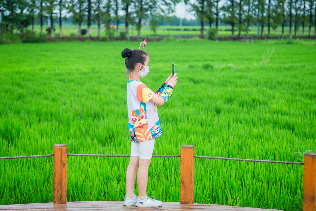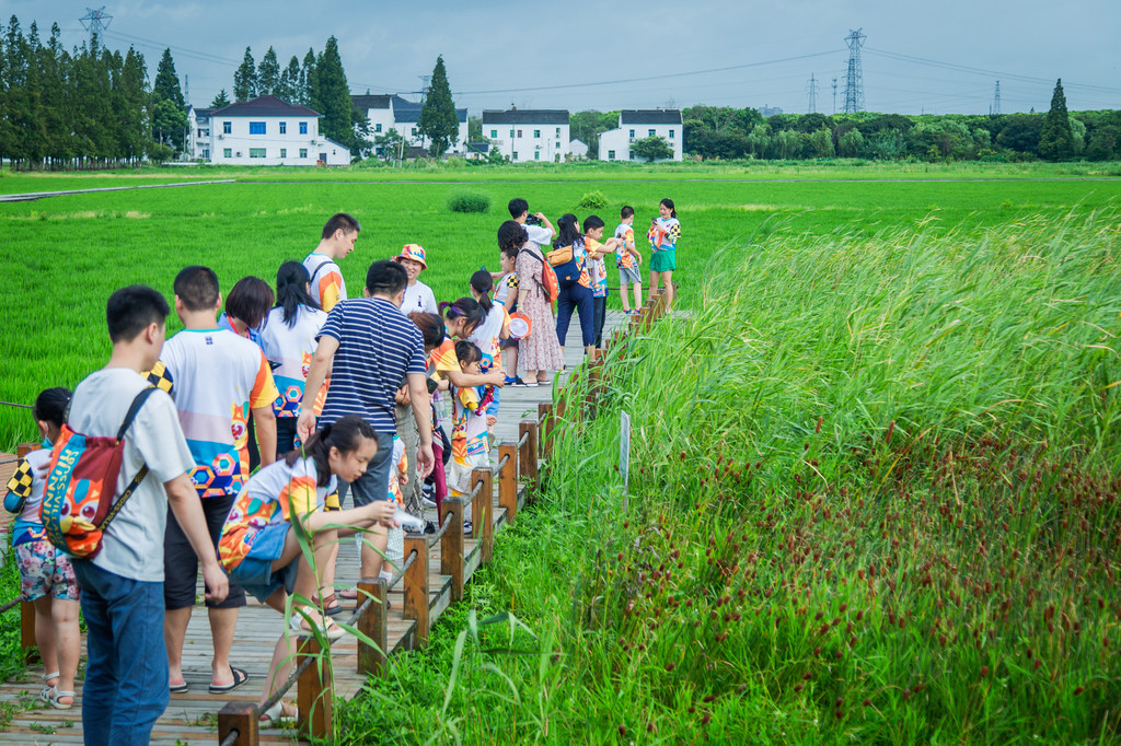 离开了古镇,小丝商们来到了震泽的谢家路村,放眼望去,全是绿油的田园风光,我们走着跳着,仍由微风吹散了头发,远处的白鹭在稻田里发呆,而我们在这里寻找着蚕猫大大。