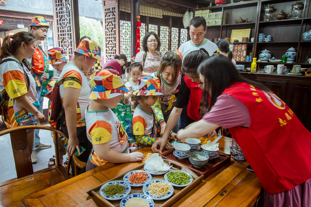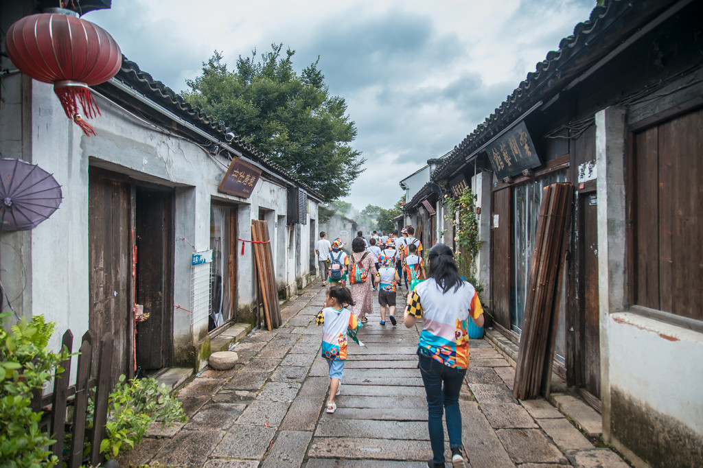 天青色等烟雨,而我在等你。我们一边旅行,一边闯关,参观完典型的江南水乡大宅门师俭堂后,老师会提问相关问题,答对的小朋友会得到桑叶币,这是提高孩子记忆的好方法呀,也是考验家长对历史古镇的了解。