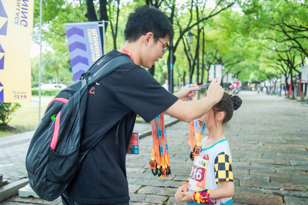 最后在村跑的始终点,通过自己的努力,领取到了属于自己的小丝商大富翁奖牌,挂在胸前,孩子们乐开了花。或许在这个宝藏震泽,将成为他们这个暑期记忆最深的一次研学旅行。