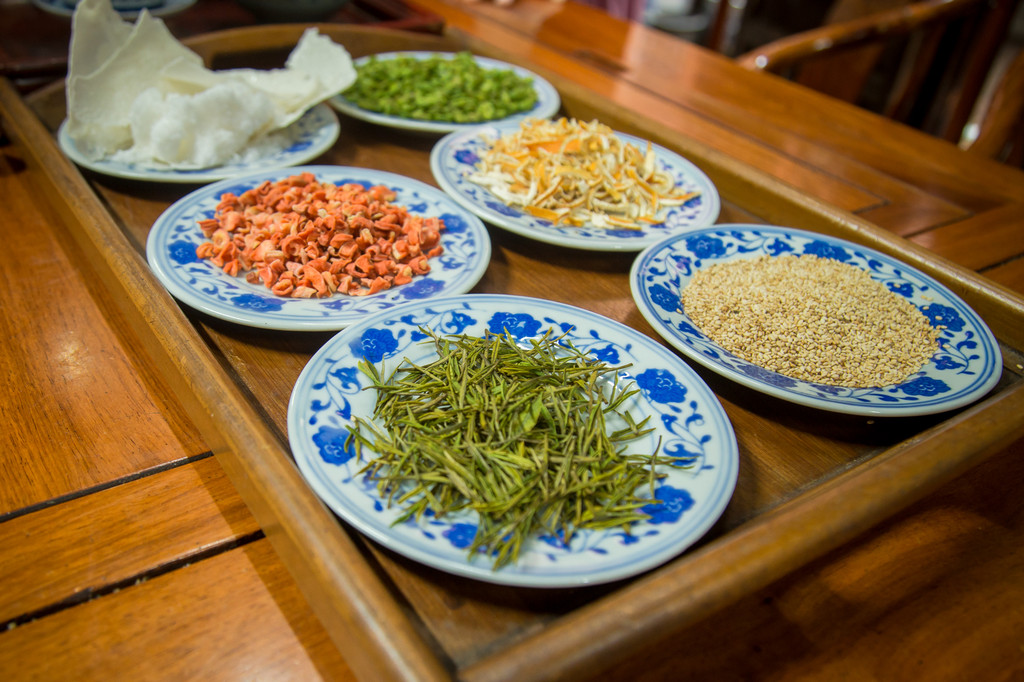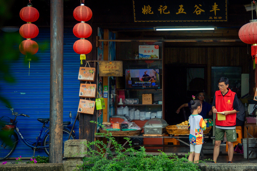 临河的店铺,古镇上的老字号,四碗茶楼是一定要去打卡的,只卖四碗茶,吹风品茶,谈天说地,生活的惬意就该如此。一品震泽四碗茶,唇齿留香百味生,所谓四碗茶指的是待帝茶(饭糍茶)、水泼鸡蛋茶、熏豆茶和绿茶,待帝茶说起来还和永乐皇帝有关,相传当年永乐皇帝南巡路过震泽,震泽的百姓奉上用饭糍干冲泡的茶水为皇帝充饥解渴,博得龙颜大悦,从此声名远扬。