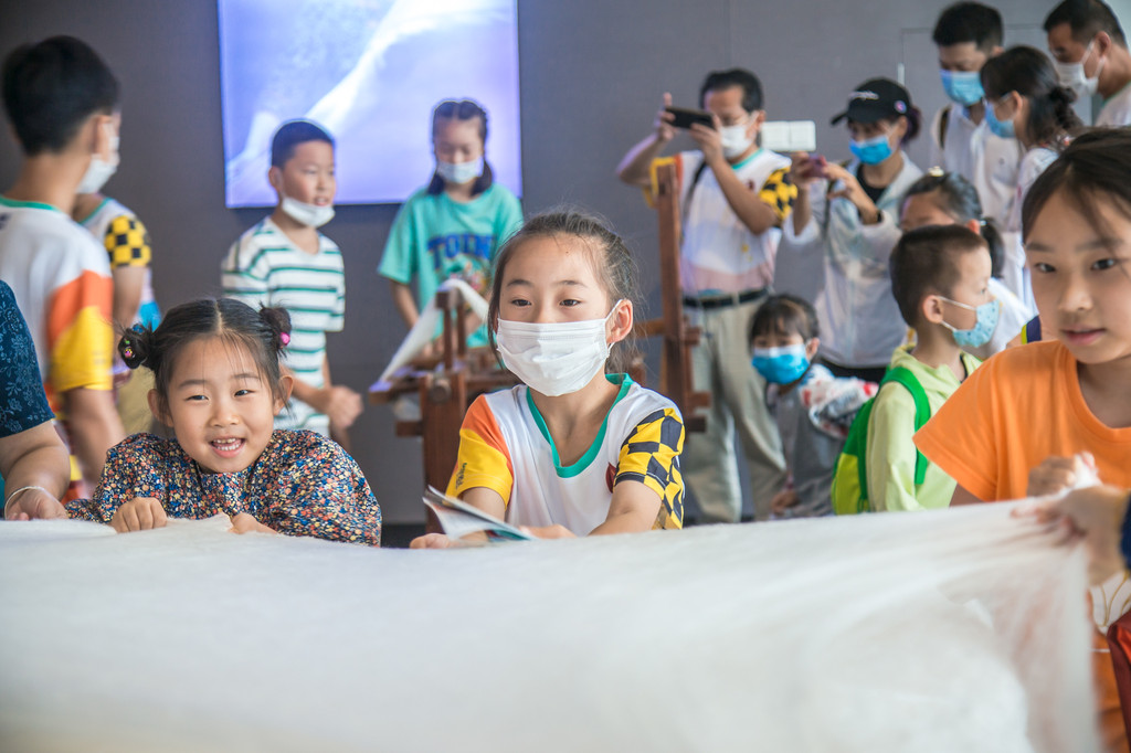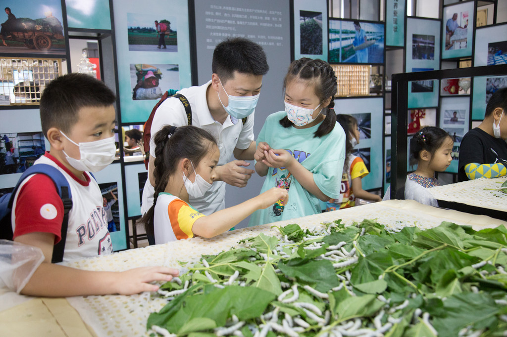 上完课,孩子们可以去亲自喂蚕宝宝,小丝商们对蚕宝宝爱护有加,一个个小心翼翼的,眼里充满着喜爱。