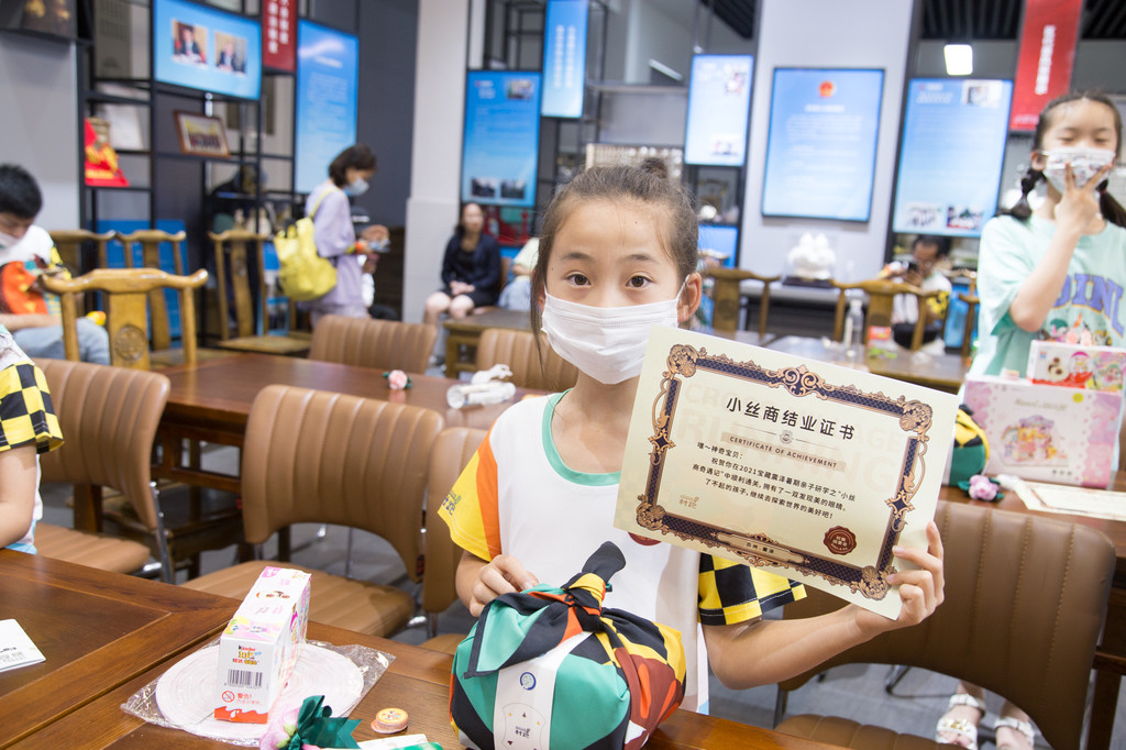 领取小丝商结业证书,收取一堆礼物,这是这次宝藏震泽研学之旅最激动人心的一刻了,自此,小丝商成了大富翁,他们用自己的勇敢和智慧,收获到了自己满意的成果,他们又长大了两天。