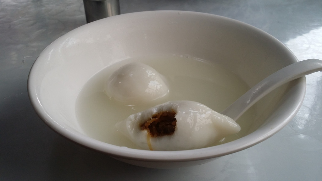 汤团下锅有先后,出锅时间随机,不烂糊的奥秘来自店家自制的水磨粉。至于味道,是我所能想象出来的最好的味道,尤其是鲜肉和黑芝麻馅的。