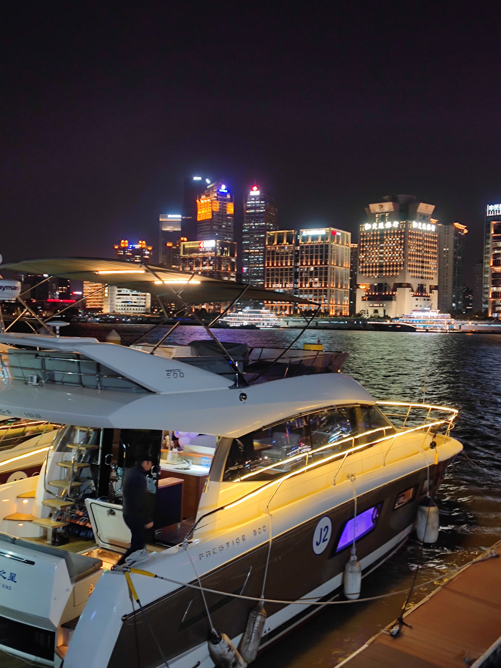 以前去上海,都是白天去浦东,这次晚上开着车过去,找到了一处极佳观赏夜景的地方,位置我拍的有照片,路牌下就可以停车,或者往东边一点也有停车位,这个地方应该就是浦东渡轮的出发站,传说中的两元看黄浦江。东边是私家游艇会,视野比较开阔,无论是眺望浦西,还是回头看陆家嘴的夜景,都是极美的景色。看到一少妇夜跑,后边跟着很壮的年轻后生,不是并行,两人一看就不是一家人,猜应该是旁边汤臣一品的有钱人带着保镖吧。