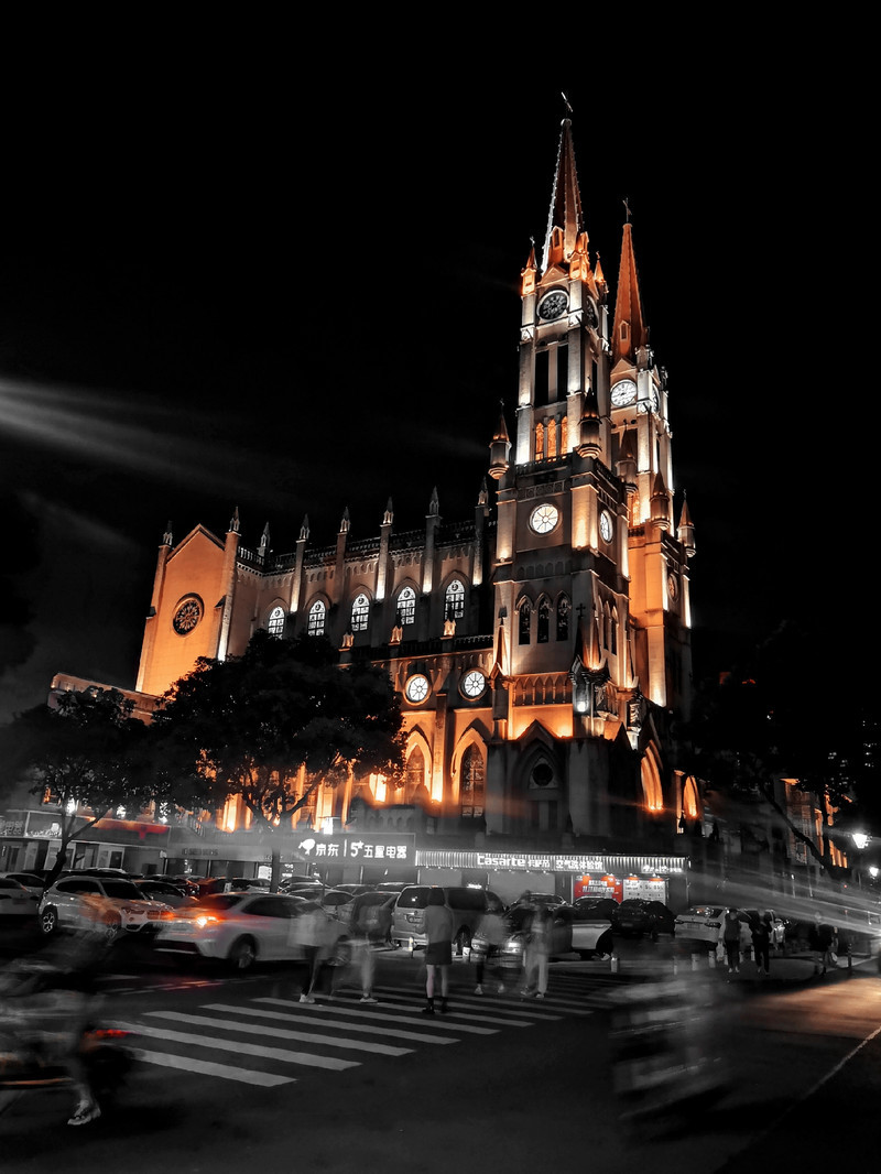 城隍庙隔着大路,有一座极宏伟的双子教堂,叫做药行街天主堂。天主堂的背后,就是天一广场了,商场体量在全国估计都是比较大的,但,只是大,想转了,晚上可以去转转。