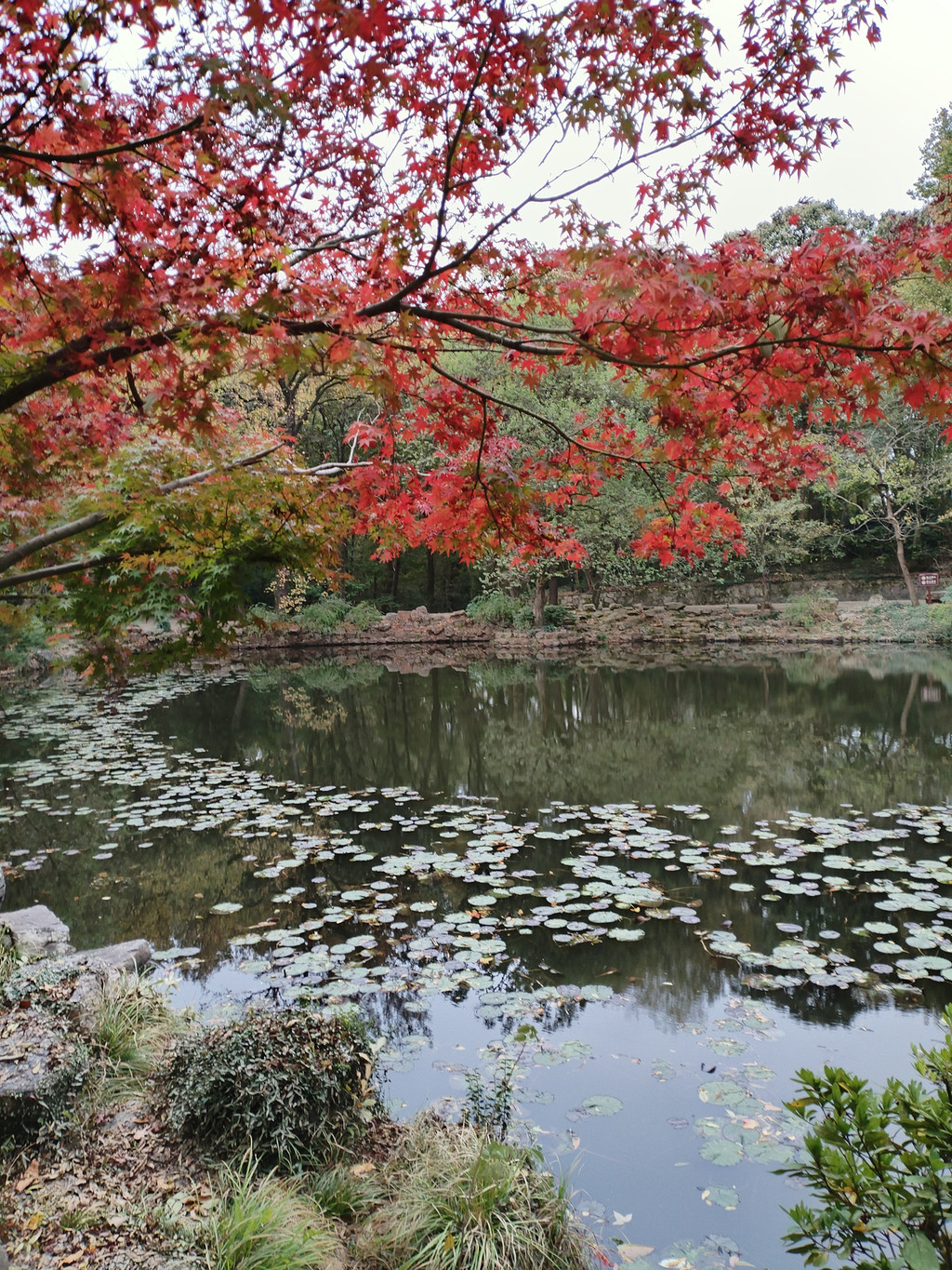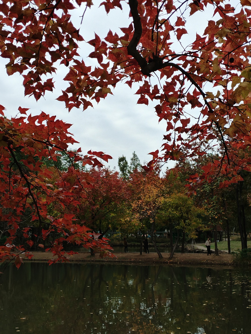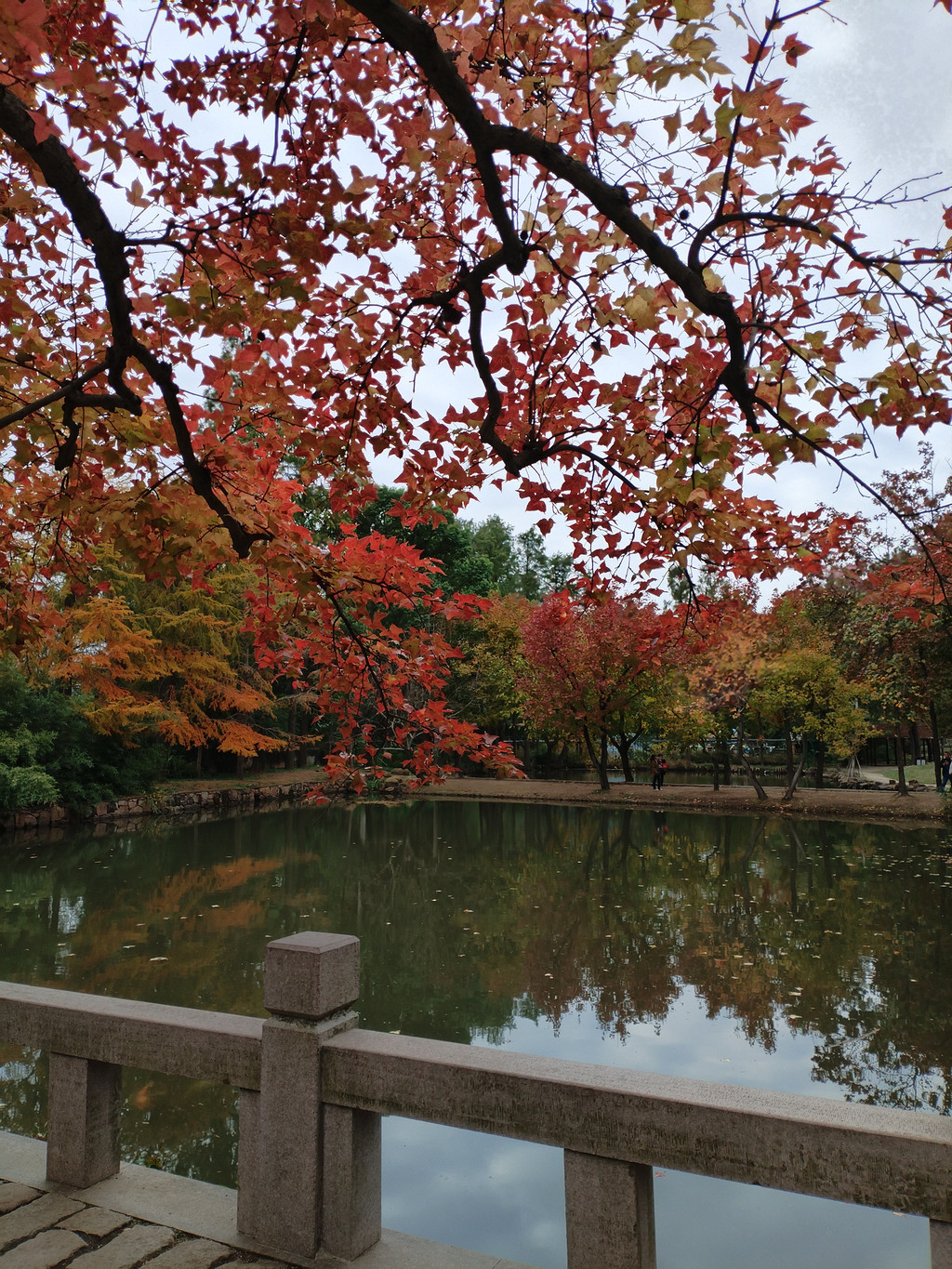 而位于苏州古城西南、太湖之滨的天平山,那里的枫树大多红了。在丽日的照射下,在池水的映衬下,天平山山麓的枫树,像火焰,像云霞,红得热烈灿烂。漫步在枫树林里,阿李觉得,天空特别蓝,阳光特别暖,池水特别清,脚步特别轻,心情特别好。而太湖国家湿地公园,除了有红叶黄叶,还有可爱的大熊猫新月和竹韵哦。
