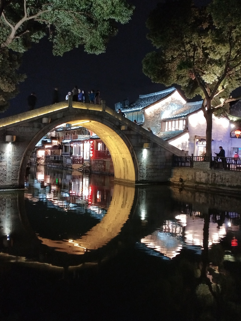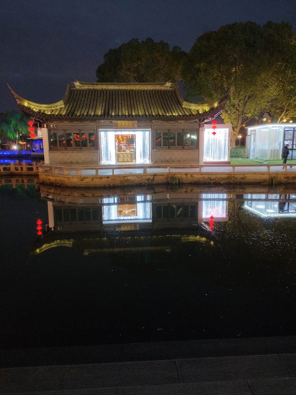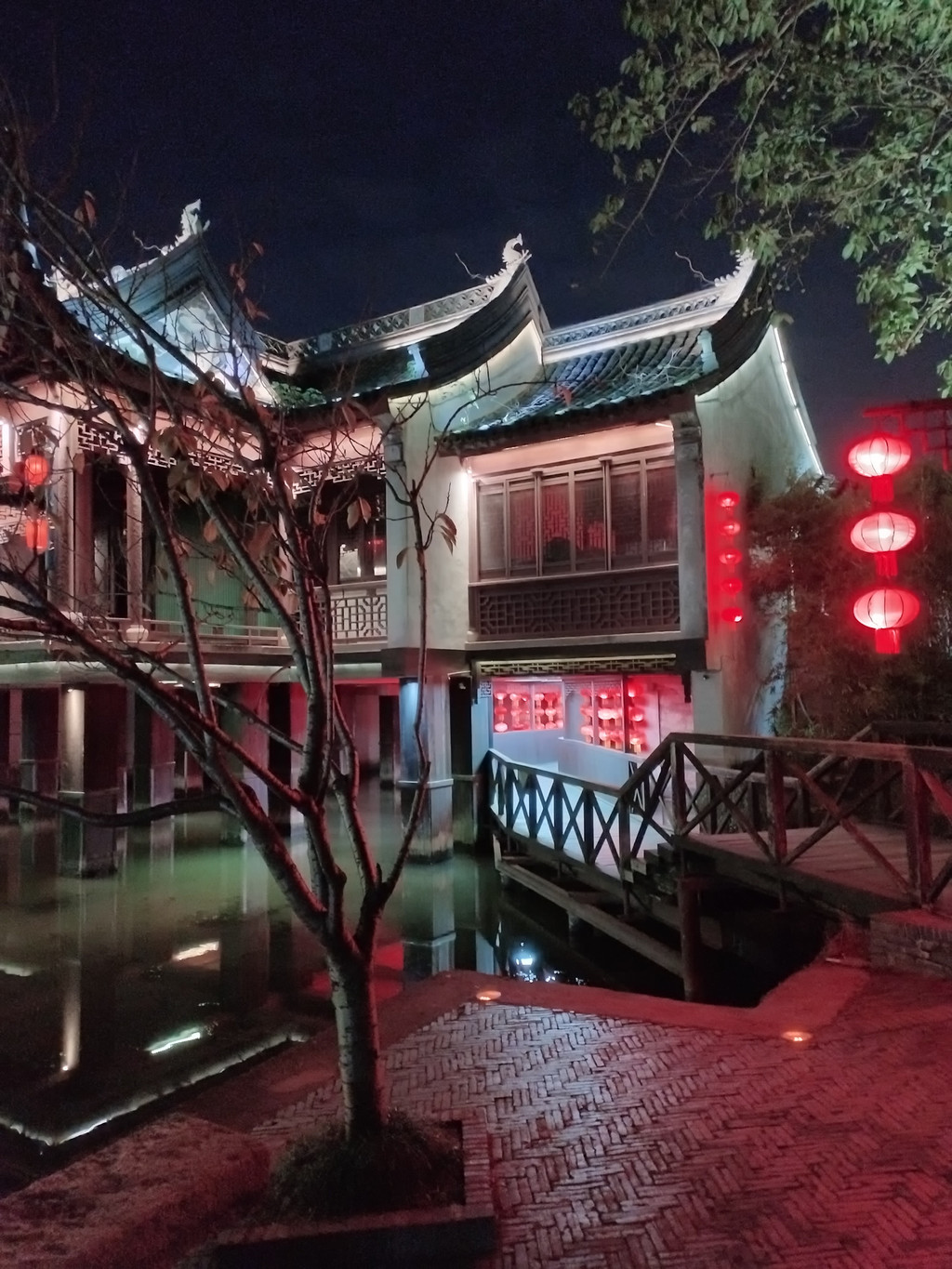 位于江浙沪三地交界处的西塘古镇,是江南六大古镇之一。街衢依河而建,民居临水而筑。我们是傍晚进入古镇的,夜幕下的古镇灯光璀璨、热闹祥和。民居、石桥、亭台、廊棚,倒映在河水里,如梦似幻,妙不可言!