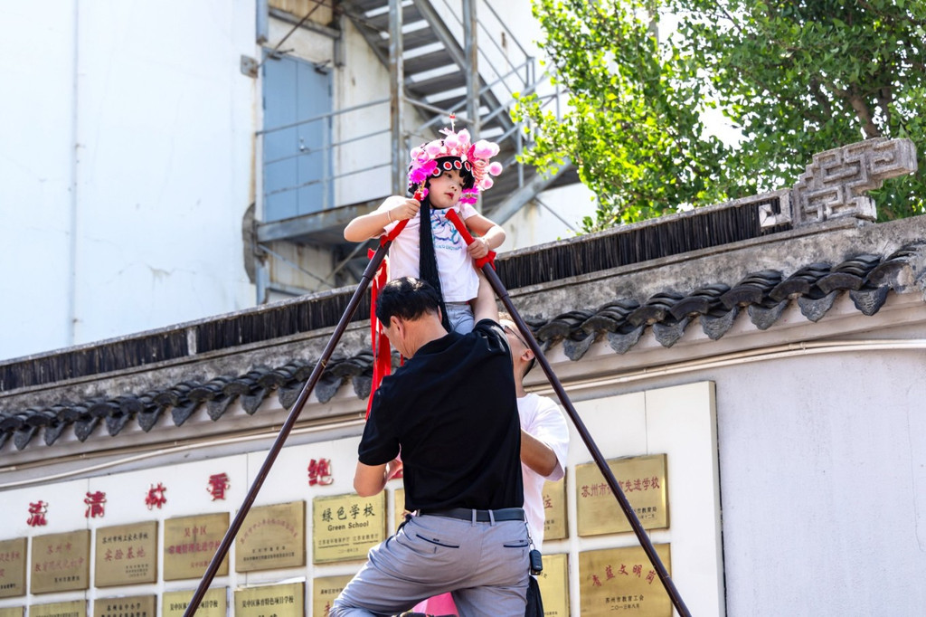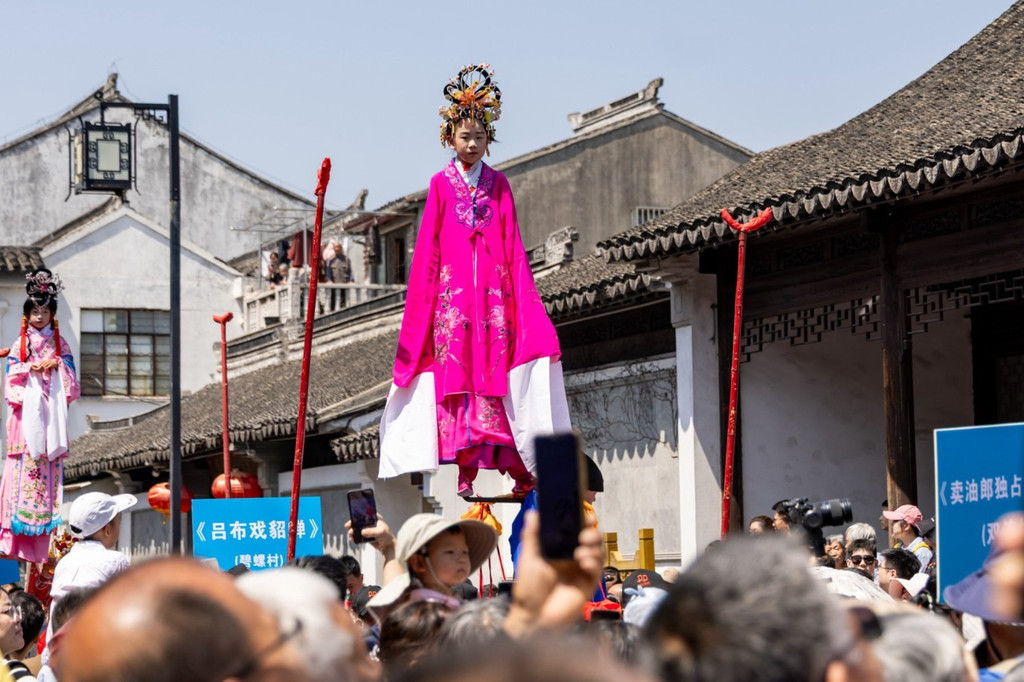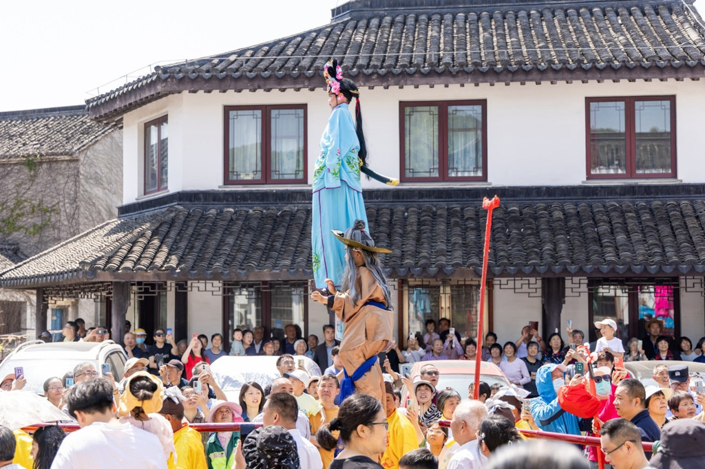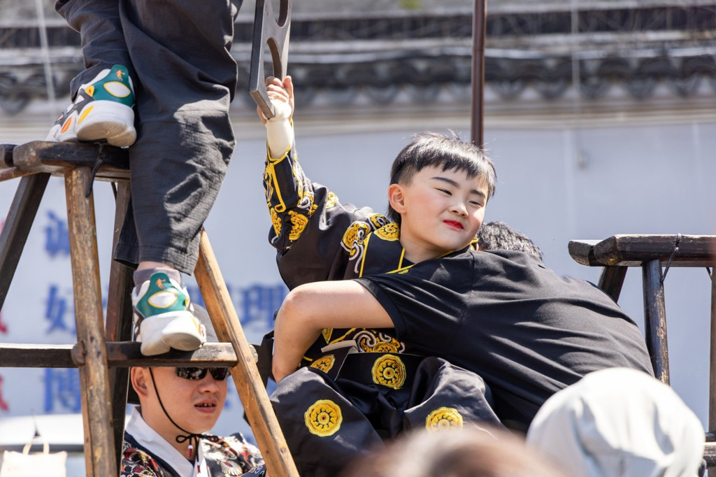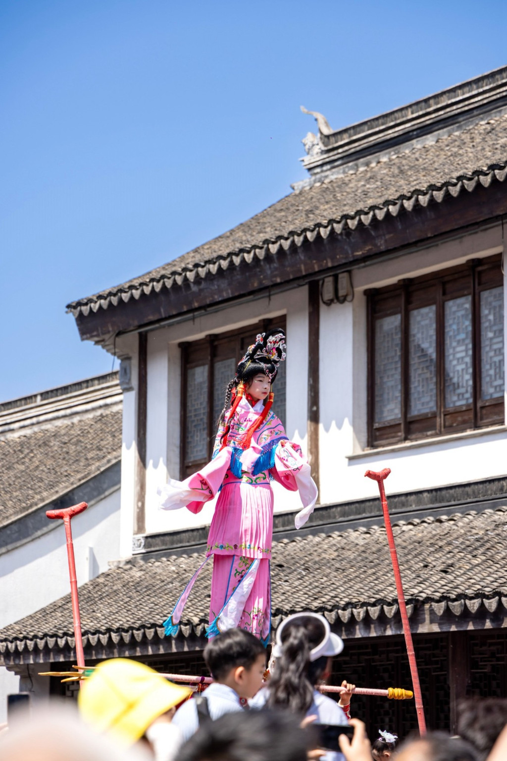 台阁是苏州东山镇传承千年的民间绝艺,被誉为“抬在肩上的流动戏台”。它起源于宋代,兴盛于明清,以高空杂技形式演绎《武松打店》《西厢记》《吕布戏貂蝉》等经典戏剧片段。2009年入选江苏省非物质文化遗产,融合戏曲、雕塑、力学,展现古代匠人智慧,是吴地文化的“活化石”。旧时百村竞演,如今成为唤醒传统年俗的文化符号。