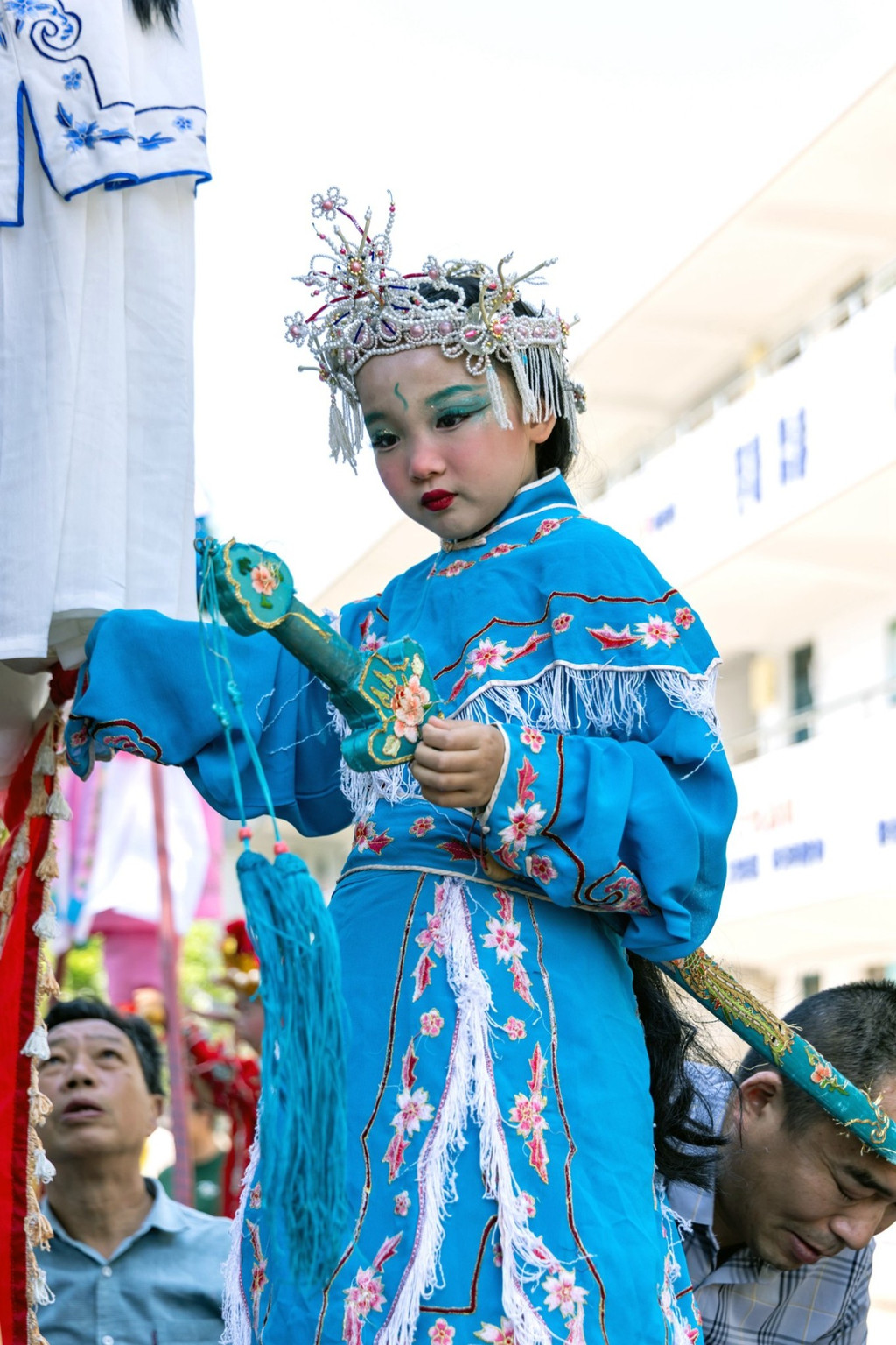 5.02东山西街上演一场台阁巡游。锣鼓喧天,万人空巷! 可爱的孩子们扮成传统故事里面的人物,青蛇白蛇、吕布貂蝉,勇敢地在凌空演绎,台阁队伍由锣鼓开道,四名壮汉肩扛“戏台”,两侧鸳鸯叉护持,喝彩声此起彼伏。爷爷奶奶们激动观看,是否回忆儿时看台阁的心情。
