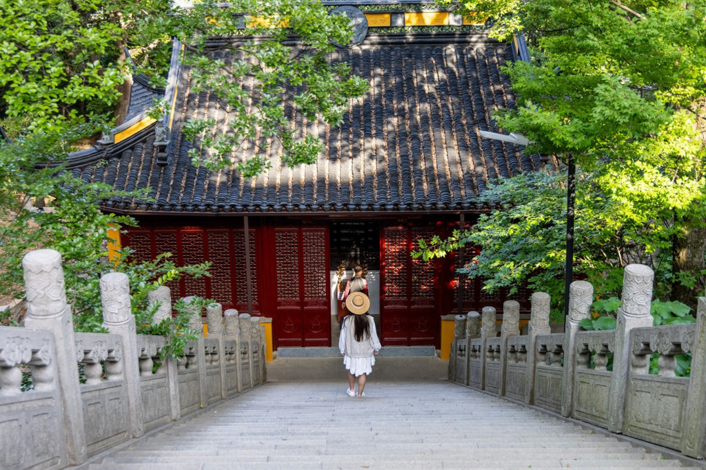 隋代始建,春日桃花如雨飘落,寺周古木参天,禅意盎然。