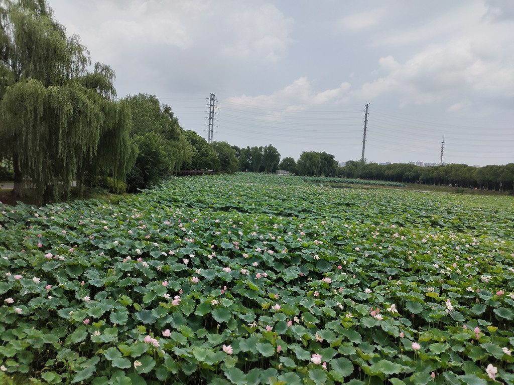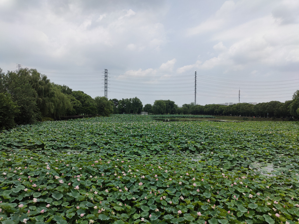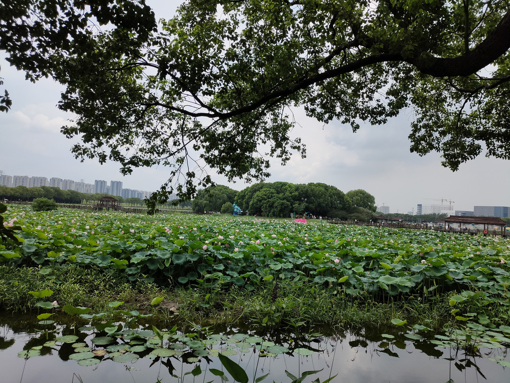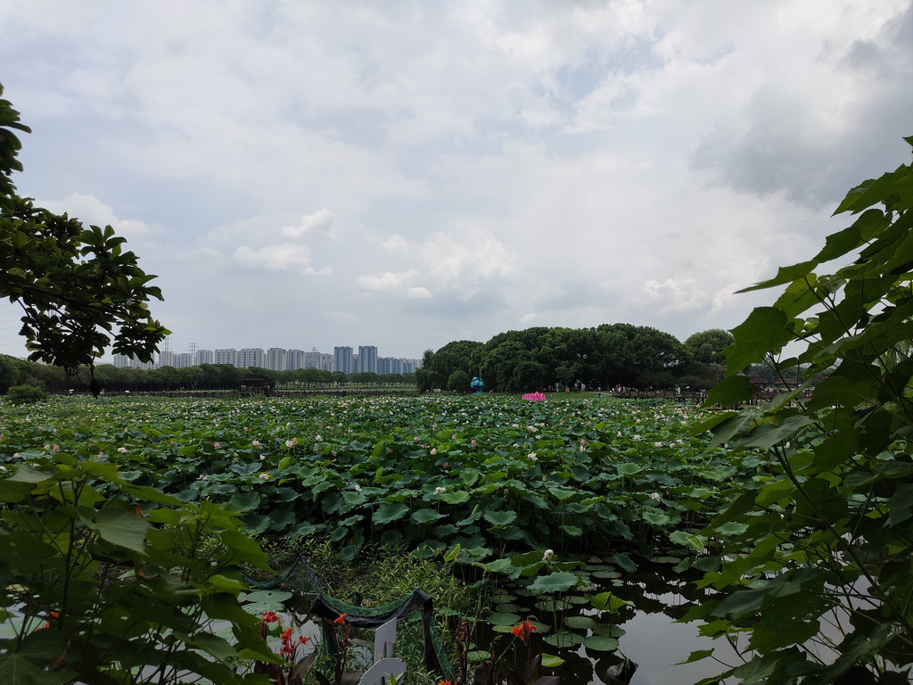 看到栈道上的拥挤的人群后,我们转道往旁边的道路走去,这里游客稀少,可以让我们尽情赏荷。现在适逢荷花花季,虽然有一些荷花已经结了莲蓬,但大多数荷正逢盛花期,还有的荷等着下一拨开放。