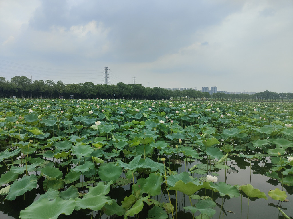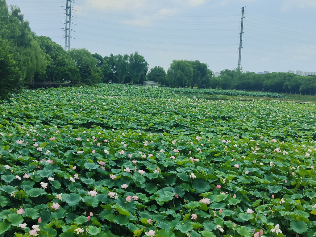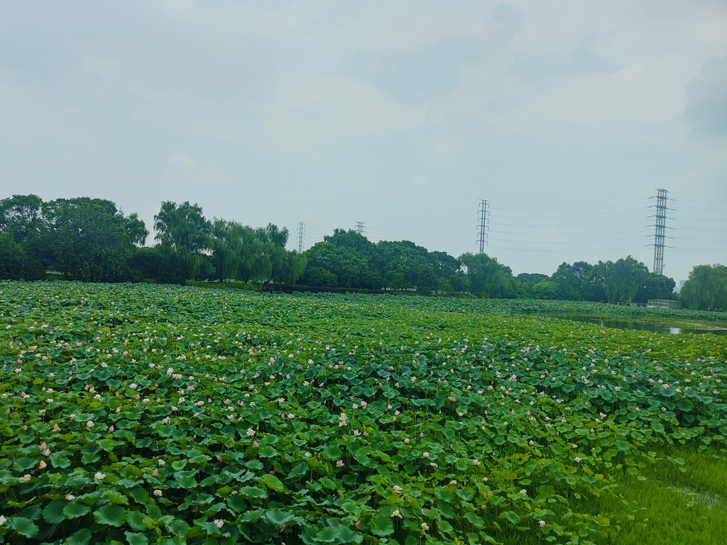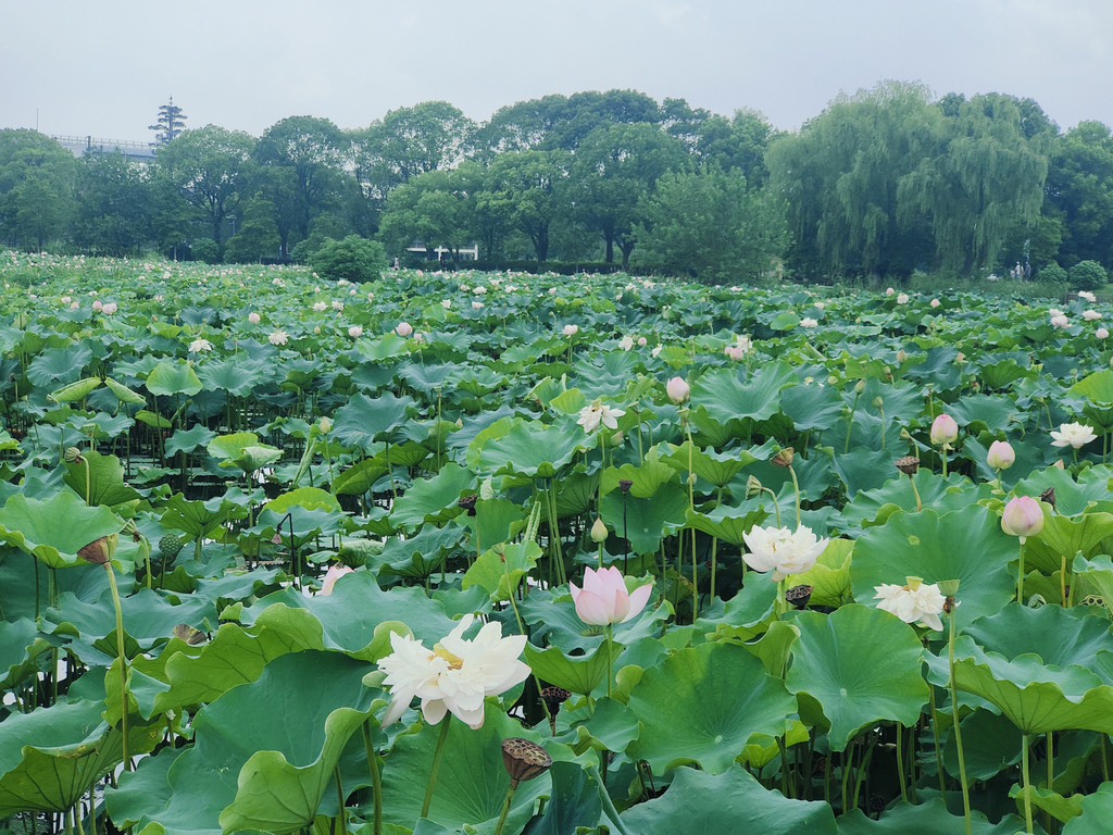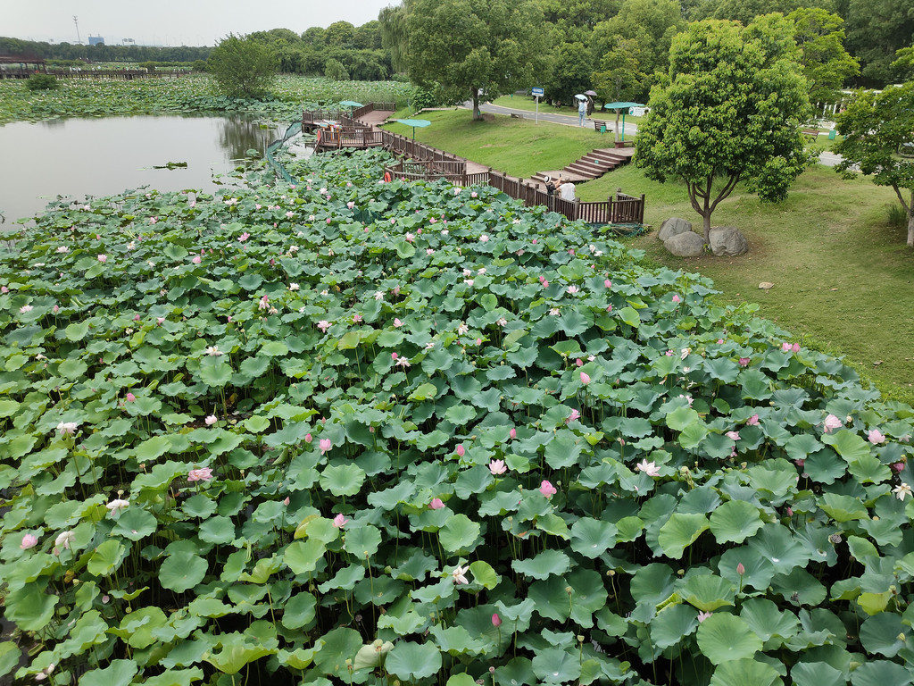 看到栈道上的拥挤的人群后,我们转道往旁边的道路走去,这里游客稀少,可以让我们尽情赏荷。现在适逢荷花花季,虽然有一些荷花已经结了莲蓬,但大多数荷正逢盛花期,还有的荷等着下一拨开放。