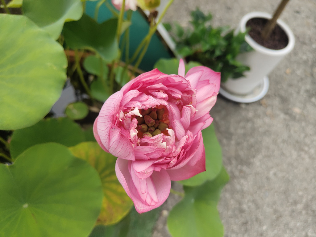 顶着大太阳进了景区,第一眼就被门口那几缸荷花给吸引住了。这些荷花当然有着相当漂亮的名字,可惜只寥寥几盆。不过,荷塘月色并不以缸荷闻名,而是以池荷著称,这是苏州地区最大的荷花种植景区了。