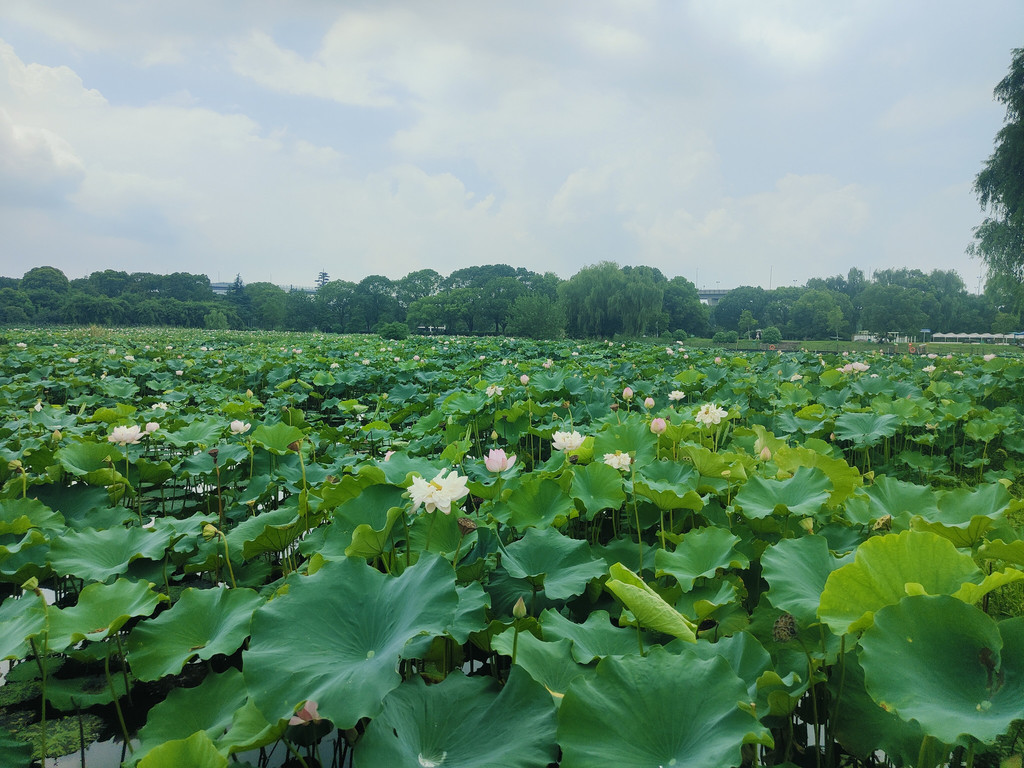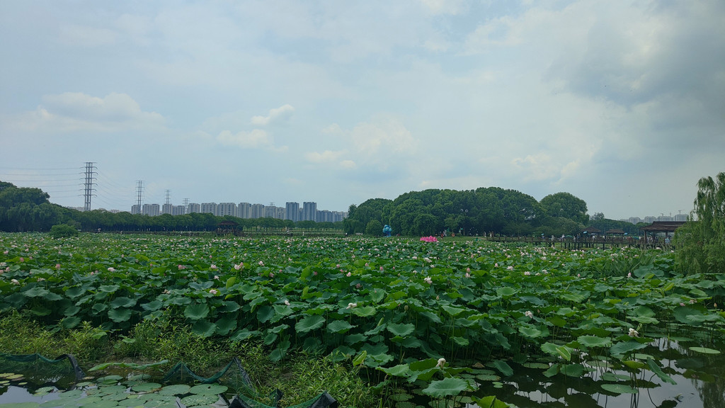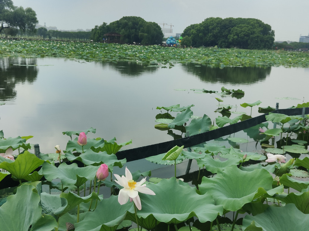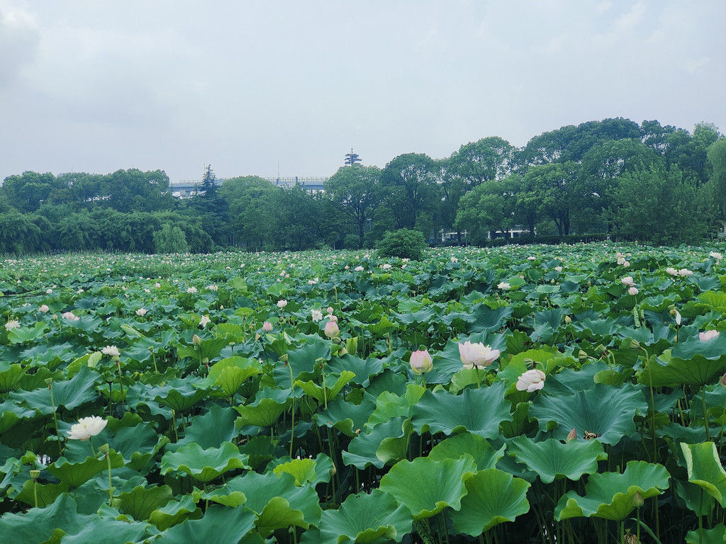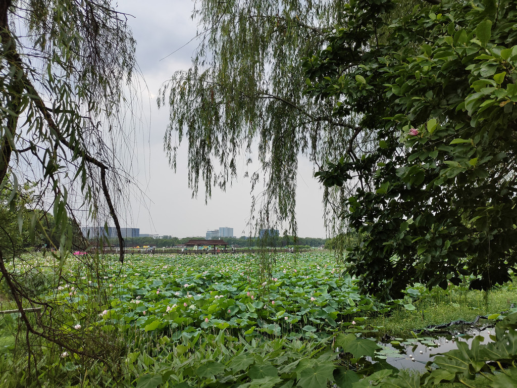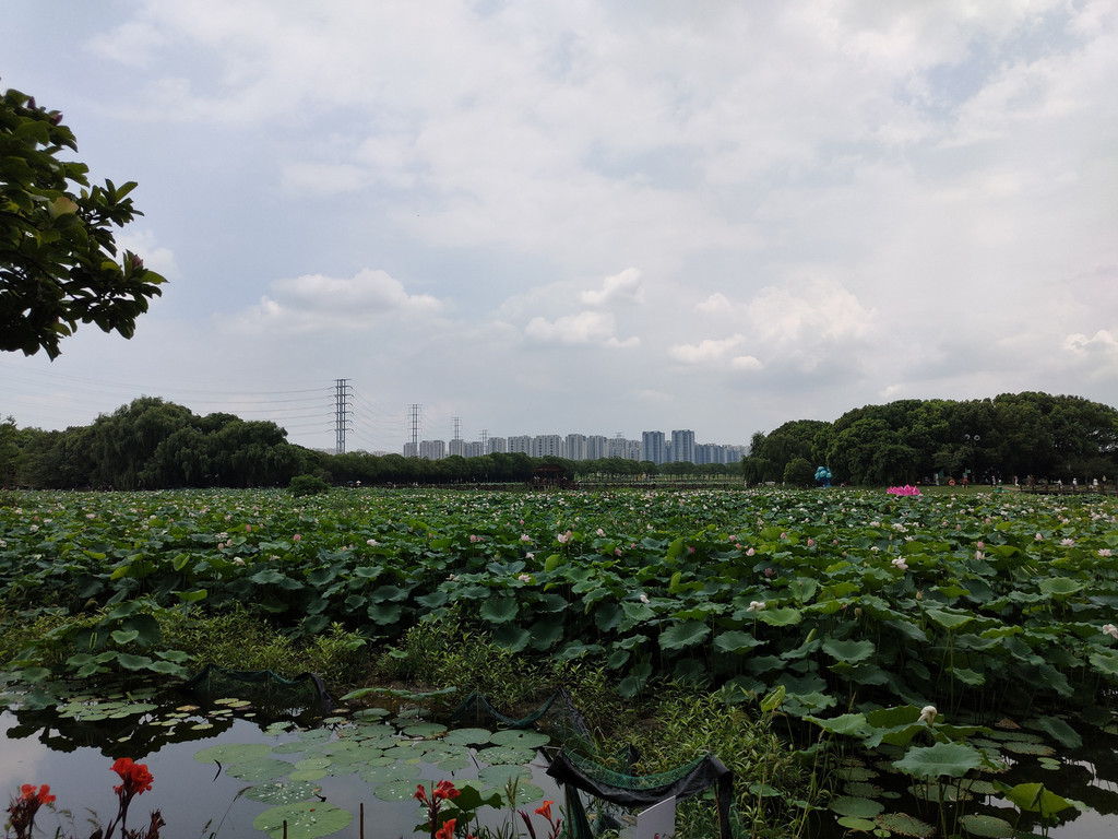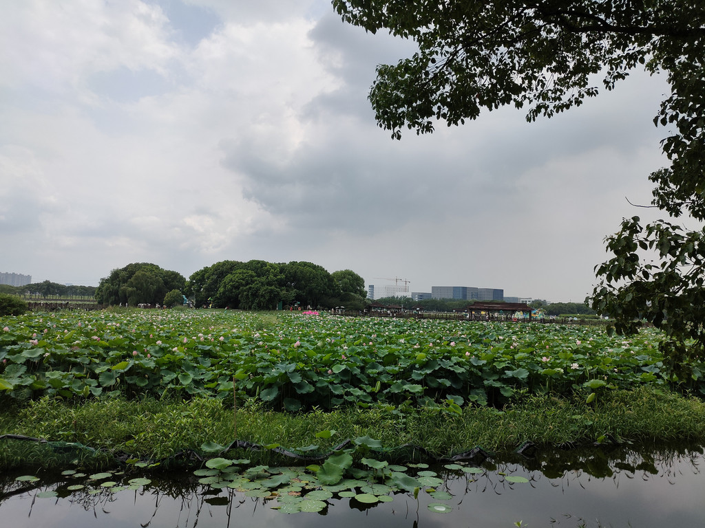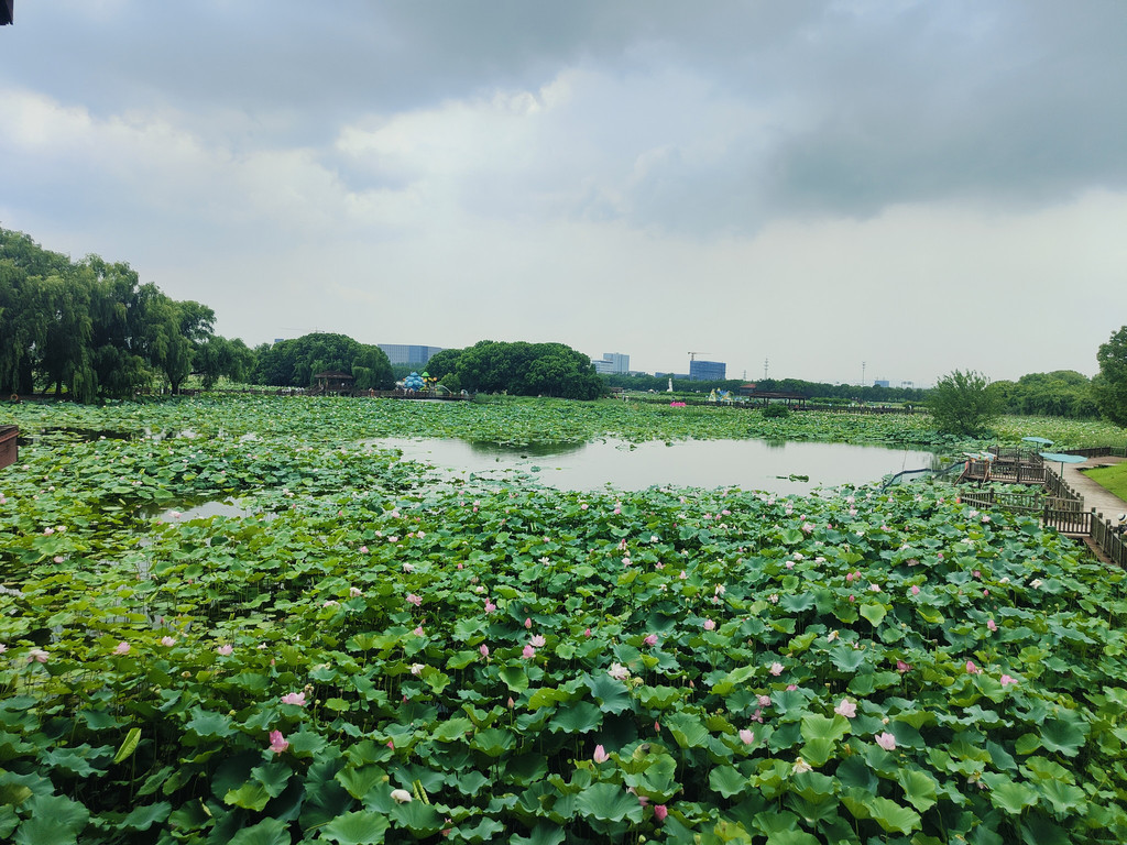 我拿出手机才拍了两张照,不知道哪个熊孩子兴致盎然地摇起了吊桥,我差点没握住手机。无奈地把手机收进包里,景色再美,我也舍不得付出手机的代价,何况我的摄影技术本身也不怎么样。这么一来,反倒一心一意观赏起这片荷塘来。
