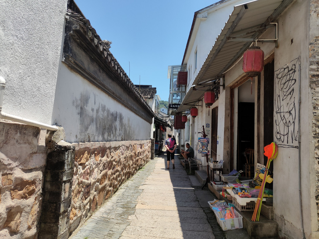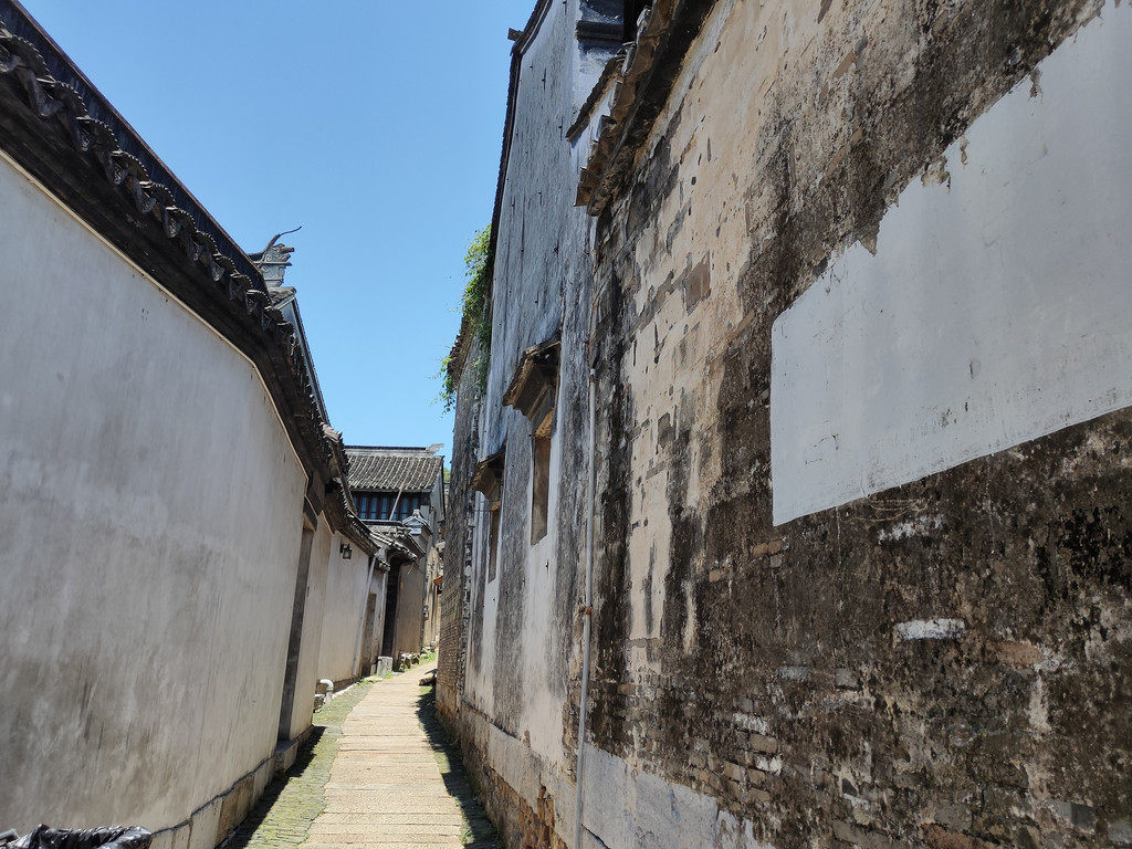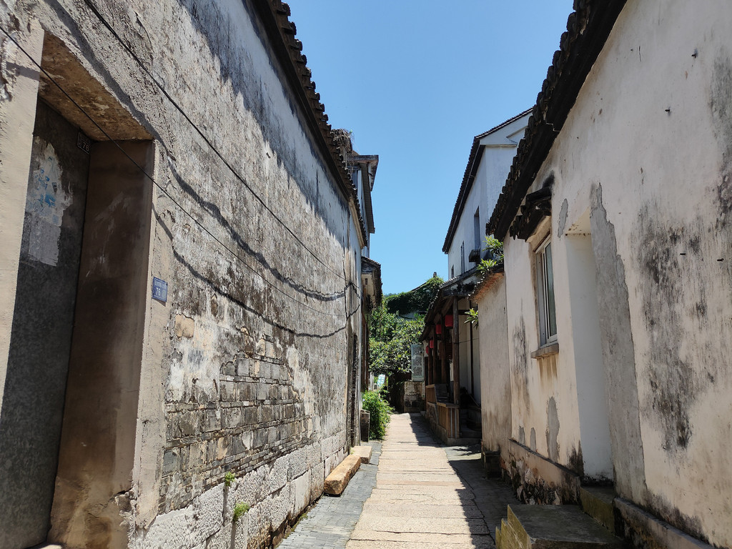 沿街继续往前走,可以看到一些建筑的外墙已经斑驳脱落,大多是平房。这一段路走来,游客很少,不知道他们都在哪里聚集,按说这里也是古村的主街道之一。