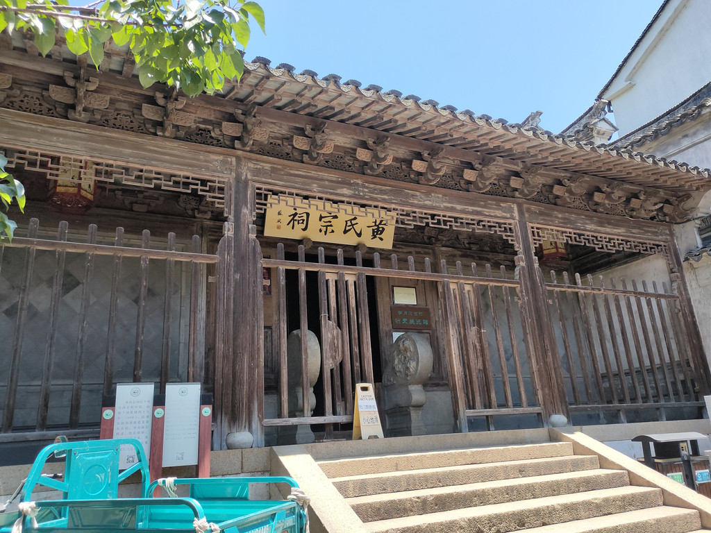 黄氏宗祠始建于清乾隆四十九年,坐北朝南,分为前后两进,占地930平方米,门厅和享堂等是原来的建筑,有的石刻已经损毁不全,透露着历史的沧桑。这里要验票,小伙伴只能在门外街道闲逛。