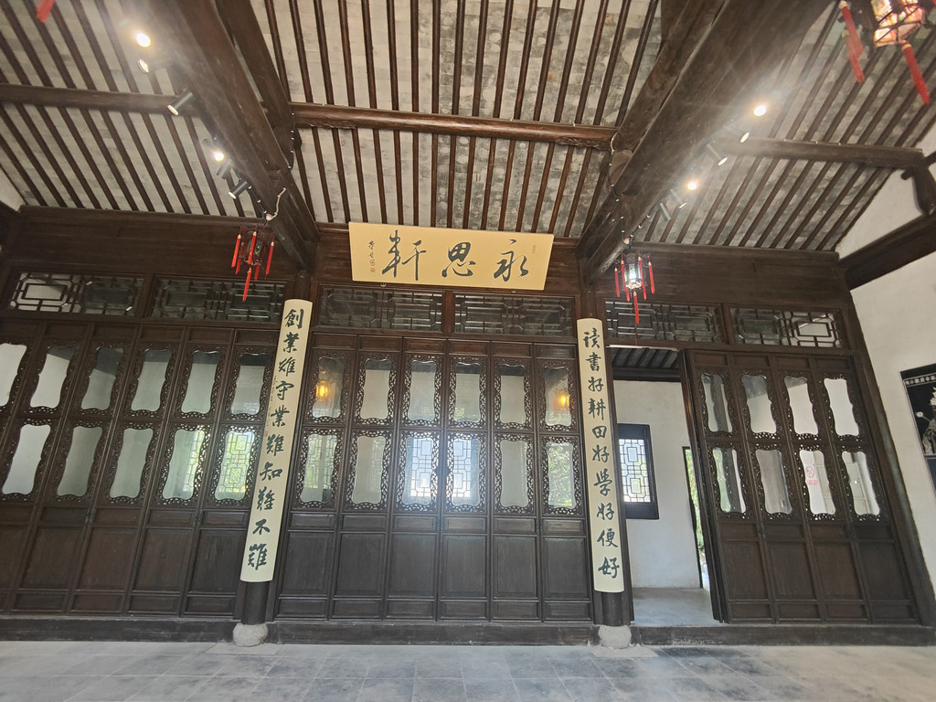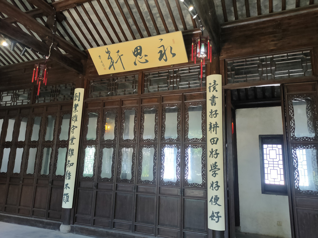 永思轩面阔三间,抬梁式结构,单檐悬山顶,砖雕、木雕、石雕都很精致,是西山现存最完整,也是规模最大的祠堂。柱子上有一副对联:“读书好耕田好学好便好,创业难守业难知难不难”,倒是很直白。