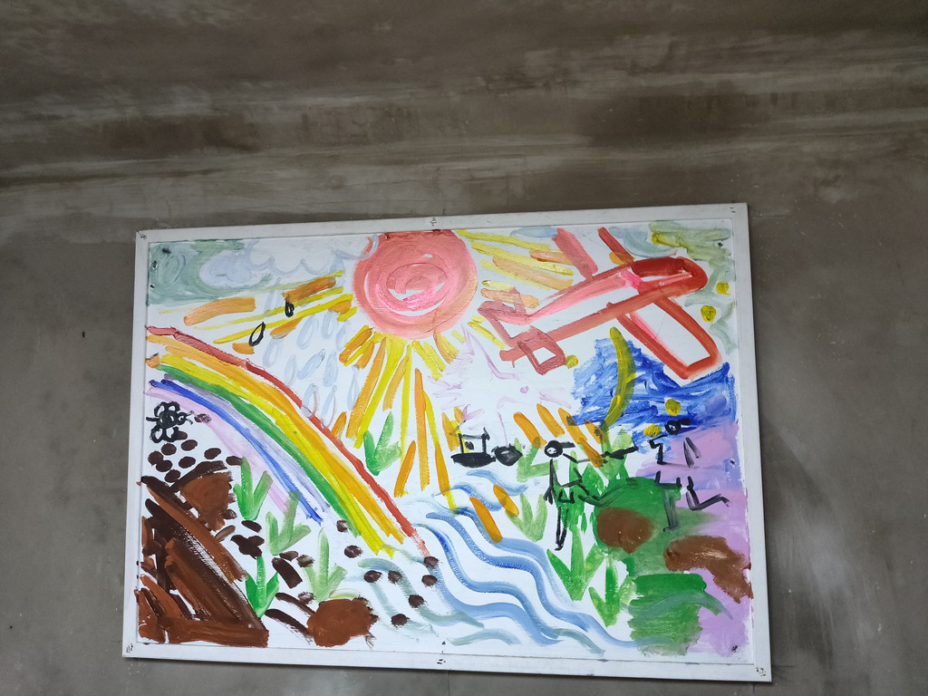 下来的时候才发现我们刚才错过了一段走廊,墙面上有几幅涂鸦画,看起来像是儿童们的手笔,充满了童趣。从这条走廊可以通往碉堡似的建筑,墙面上的窗口是方形的,但其实看不到什么景色。