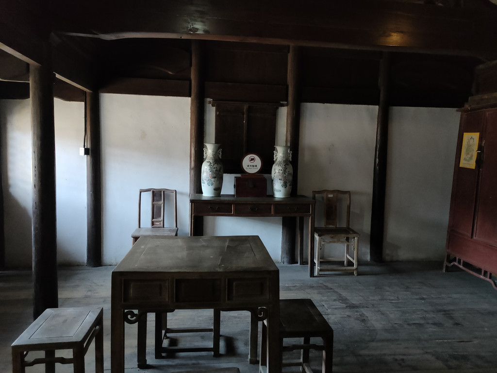 第二进是楼房,楼上用作卧室。原来的建筑物破损比较严重,局部经过了改建,还保持着原来的风貌。床是架子床,框架上有着精美的雕刻。