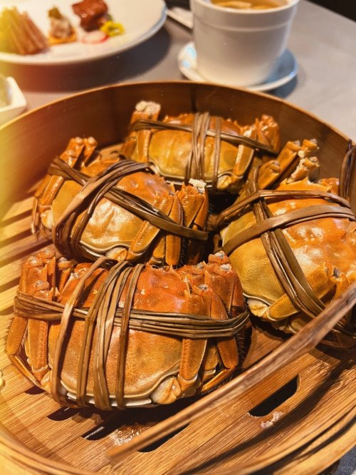 ????这些大闸蟹背青肚白、金爪黄毛,清蒸上桌后香气扑鼻,蟹黄浓稠如膏,蟹肉紧致弹牙,真的是“鲜”到骨子里!