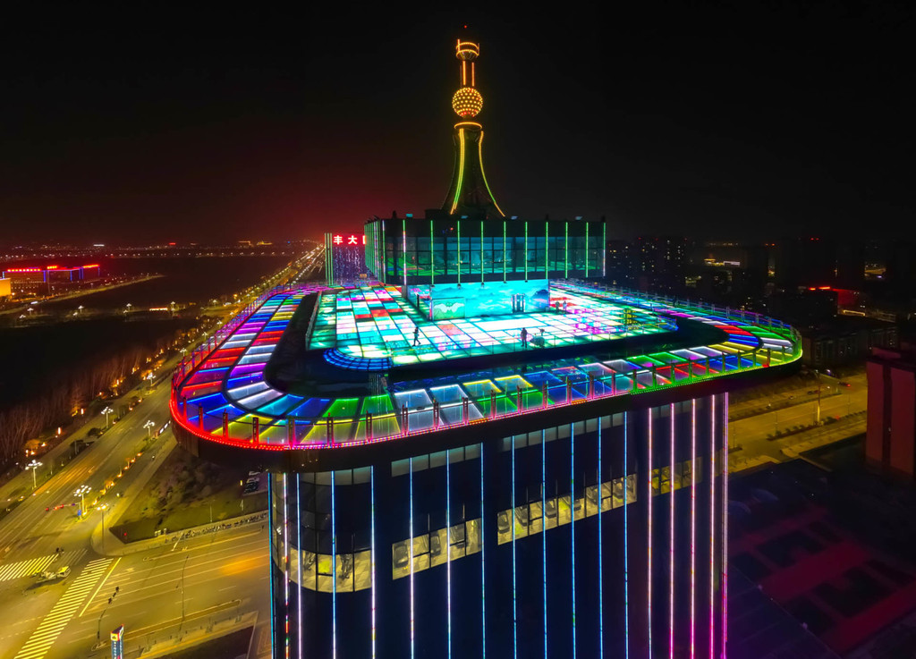丰大国际 丰大国际登 宿州 丰大国际城悬空玻璃观景平台,俯瞰新汴河景观带和城市中心的万家灯火,体验“手可摘星辰”的诗意浪漫~这里是 中国 首创楼顶面积最大的幻彩玻璃观景平台,距离地面高达100多米。和三五好友拍照打卡,观 宿州 夜景,远眺汴河博物馆和新汴河风景区,好不惬意?