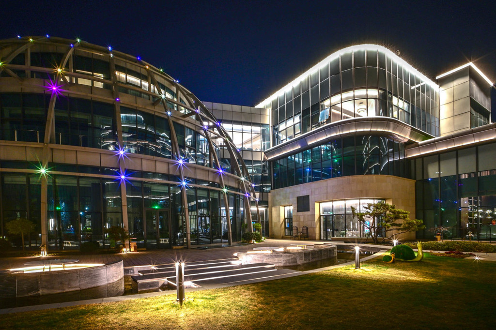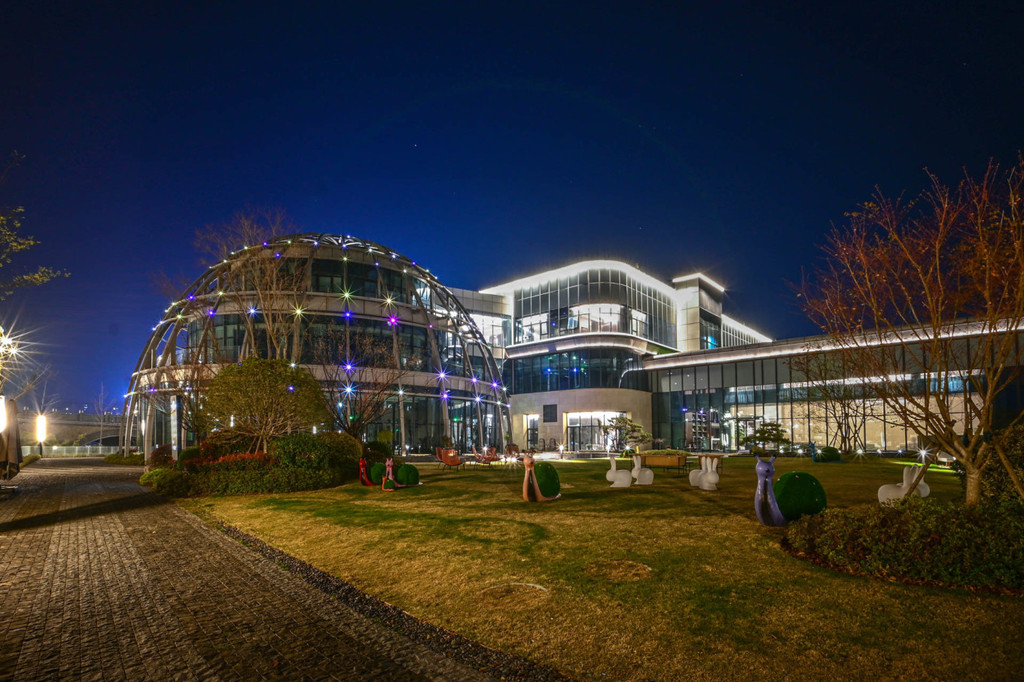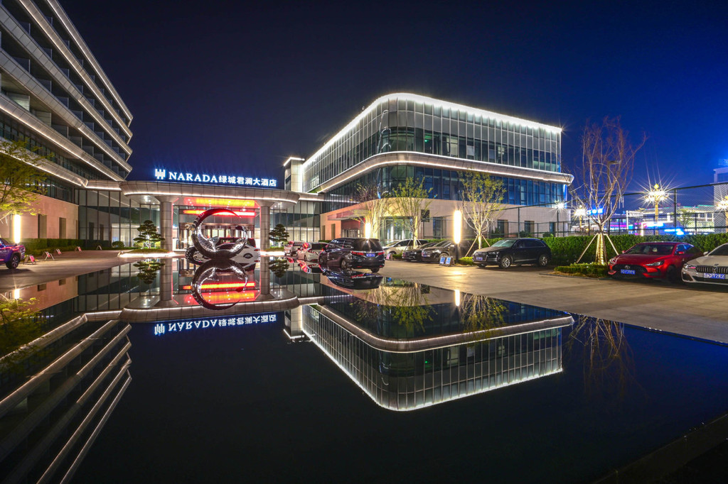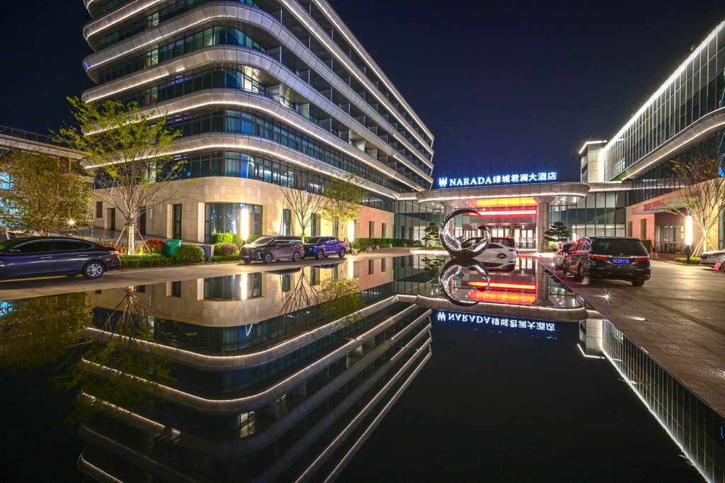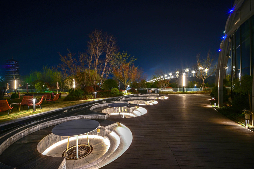 宿州 宿州 宿州 宿州 宿州 宿州 宿州 宿州夜幕低垂,酒店的草坪空间灯光设计的很美,且和岱湖水岸无缝连接,住店客人下楼就可以在湖边小憩,舒服极了!