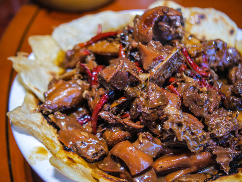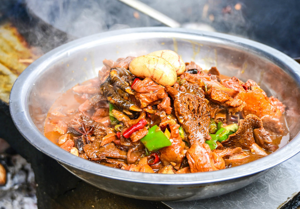 宿州 宿州菜品以本地散养大公鸡为主料,公鸡要三年左右为最好,这样炖出的鸡香味浓。配以鲜美的野蘑菇和各种调料,口感鲜美,香味扑鼻。