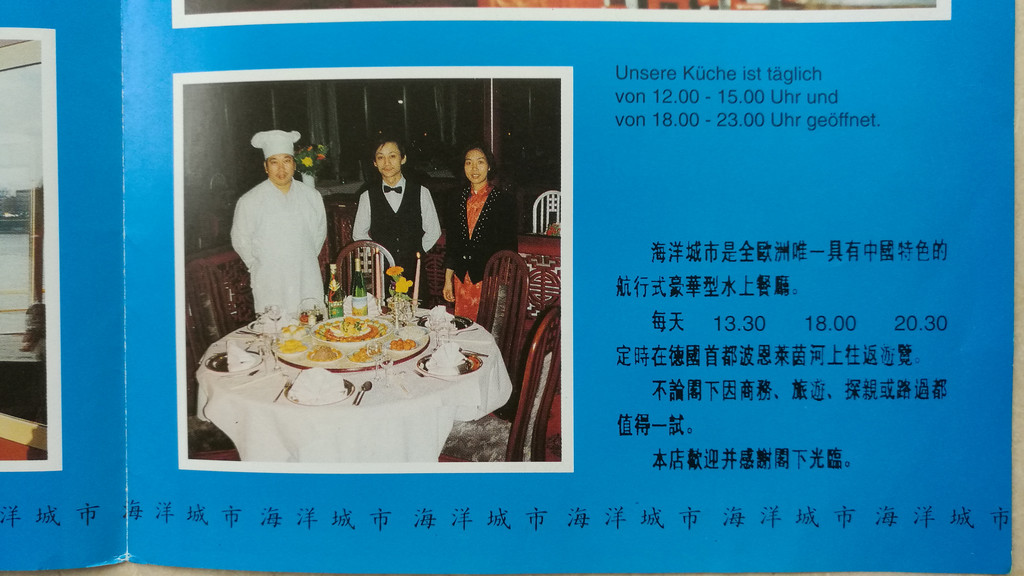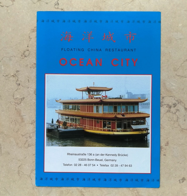 晚上在莱茵河水上餐厅“海洋城市”吃饭,这是一家中餐馆,由一位中国富商经营。