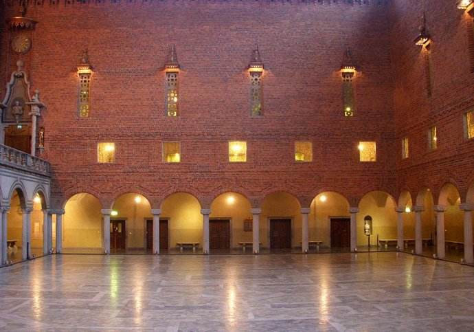 斯德哥尔摩市政厅“蓝厅”,诺贝尔奖颁奖后举行晚宴的场所。