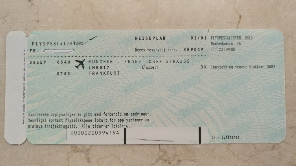 日程安排:奥斯陆—法兰克福(汉莎航空LH3101),法兰克福—北京(汉莎航空LH720)