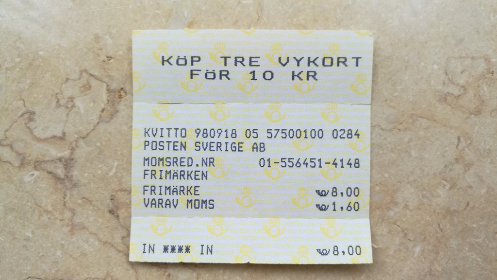 在王宫博物馆内看到很多精美的壁画和浮雕。之后在斯德哥尔摩邮局寄了一张明信片给家人,收费8克朗。