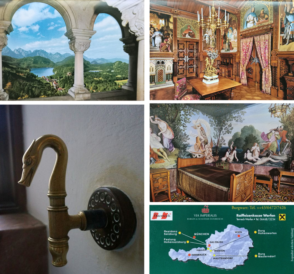 城堡按照路德维希二世的梦想进行设计,花费了17年时间。里里外外都是他心仪的天鹅形象,就连盥洗间的自来水龙头,也装饰成天鹅头颈的形状。