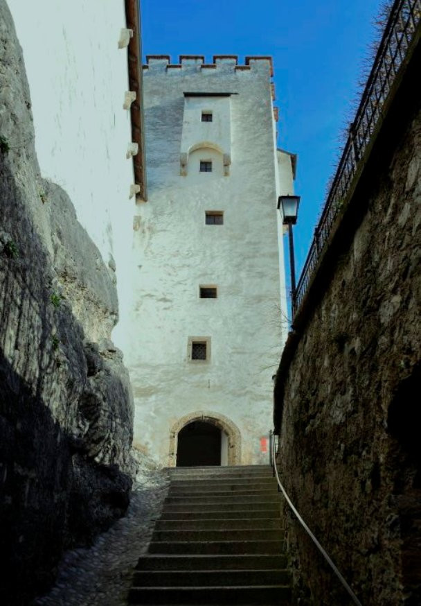 萨尔茨堡要塞位于僧侣山(Moenchsberg)上,建于1077年。当时,教皇与国王争夺主教任命权,忠于教皇的萨尔茨堡主教在其领地上修建了这座用于防御的建筑。城堡依山而建,墙高院深,在漫长的战乱年代始终傲然矗立,从未破城。