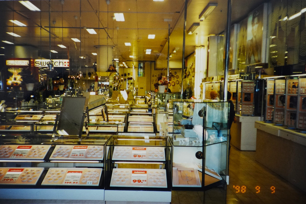 我买了一只0.2克拉的白金箍钻戒,464美元(其中白金箍113美元),可退税14.5%(当日荷兰盾HFL、德国马克DM、美元USD的汇率为:1DM=1.12HFL,1USD=1.8867HFL)。其他重量的钻戒价格为(含白金箍113美元):0.15Ca(蓝色,纯度P2) USD378,0.25Ca(黄色,纯度VS) USD596,0.42Ca(蓝色,纯度SI) USD2354,0.53Ca(白色,纯度P2) USD1728。钻戒当然越大越好、越纯也好,可惜兜里没钱啊。