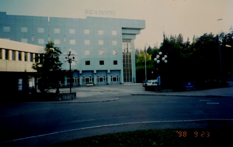 早上从Mjolby乘坐大巴,向本次行程的最后一站挪威进发。中午在瑞典西部城镇卡尔斯塔德Karlstad吃饭。该镇人口约8万,是著名化学家、发明家诺贝尔后半生在瑞典的居所。阳光暖暖地照在身上,四周一派宁静,真是舒服。下午2点到达瑞挪边境。挪威不属于欧盟,如需把欧盟国家购买的商品退税,要在瑞典境内办理。手续很简单,看一下退税支票和护照,当场退钱给你。这几天发现,同一种商品以美元标价与本币标价,换算下来用美元买更贵,还是兑换成当地货币较好。当天1美元=7.975瑞典克朗(1998年9月18日),商场、车站、机场等都有兑换点forex(foreign exchange),兑换一次手续费20克朗。同一天在同一家商店消费超过200克朗,可退税10%左右。