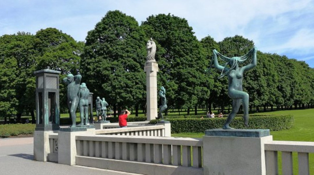 之后去市郊的维格兰雕塑公园参观。公园占地50公顷,分为生命之桥、生命之泉、生命之柱、生命之环四大部分,表现了从出生到死亡的人生轨迹。斯塔夫·维格兰(1875一1948),著名雕刻家,与戏剧家易卜生、画家蒙克、音乐家格里格并称挪威四大艺术才子。1910年,40岁的他向奥斯陆市政府提出修建一座雕塑公园:“你们给我一片绿地,我会还世界一个惊喜”。市政府同意提供Kirkeveien大道尽头的土地,还专门为他建造了一个工作室。从1906到1943年,维格兰花费30多年,创作了192座雕像、650个浮雕。有石雕,也有铜雕,个个栩栩如生。