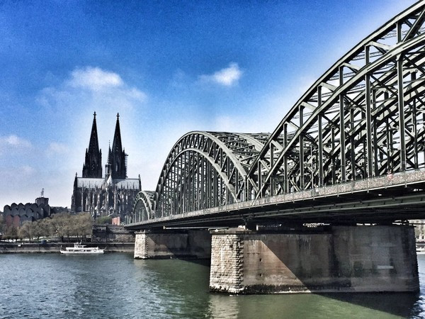 早上7:40由波恩坐火车前往荷兰阿姆斯特丹,经过科隆Cologne霍亨索伦大桥