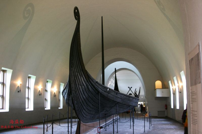 这艘最古老的海盗船建于公元800年,船身宽大,首尾尖细,向上翘起,中间竖立着高高的桅杆。那时的挪威海盗,就是凭借这些木帆船横渡大西洋,占领了北大西洋上的大小岛屿,发现了格陵兰和北美大陆。关于北欧海盗,有一部美剧《维京传奇wings》,讲述维京人的生活、贸易、探索及对外侵袭,感兴趣可以看看。