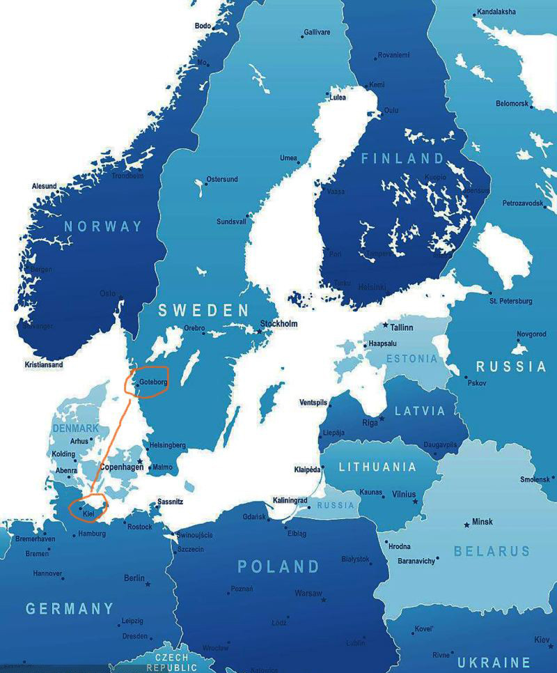 乘坐欧洲最大航运公司StenaLine渡轮,经基尔运河,一条连接北海和波罗的海的重要航道,于次日早上9点到达瑞典哥德堡市。